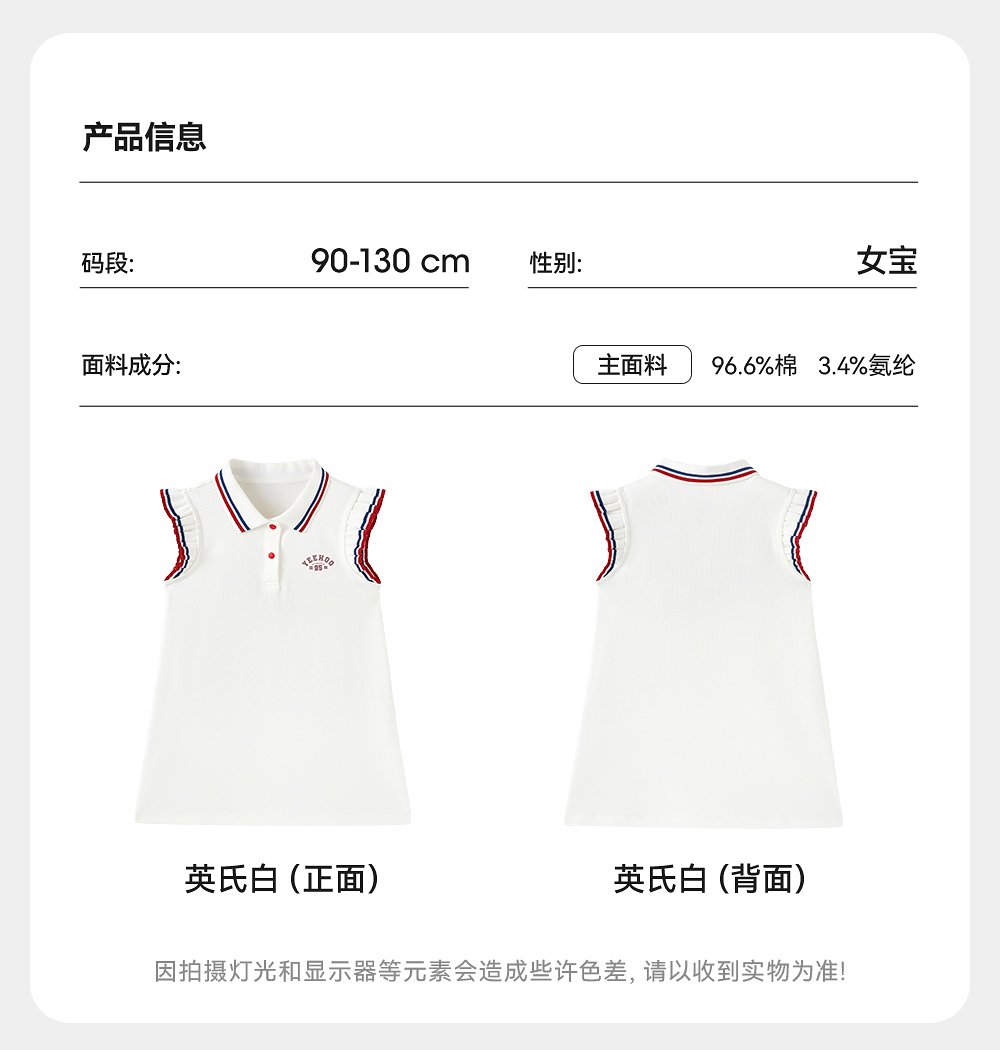 英氏儿童裙子夏季活力女童POLO连衣裙透气女孩裙子新款背心裙