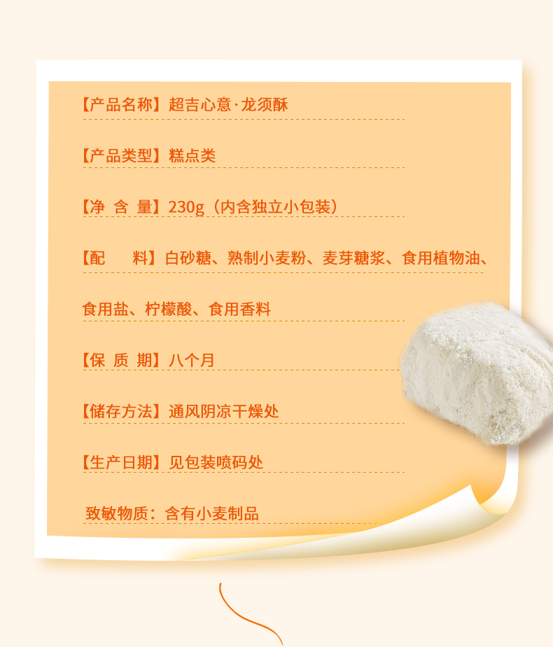 【湖南特产】超吉心意龙须酥230g/盒 传统手作糕点 丝丝清甜