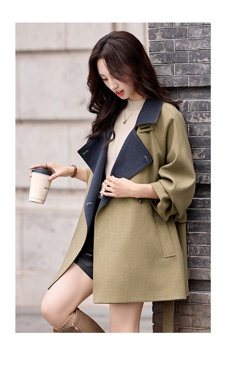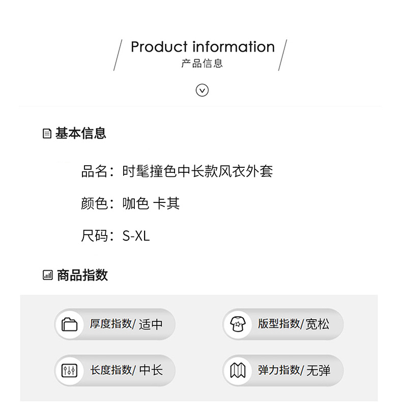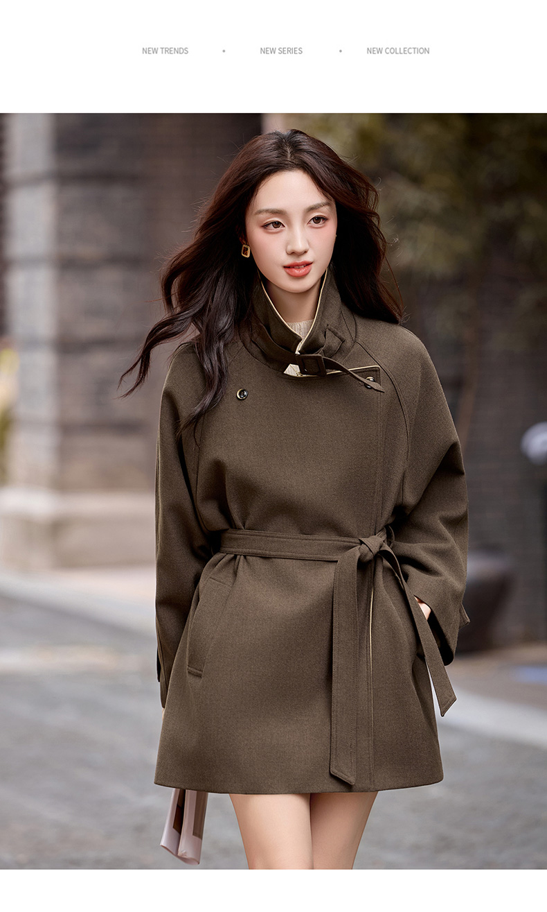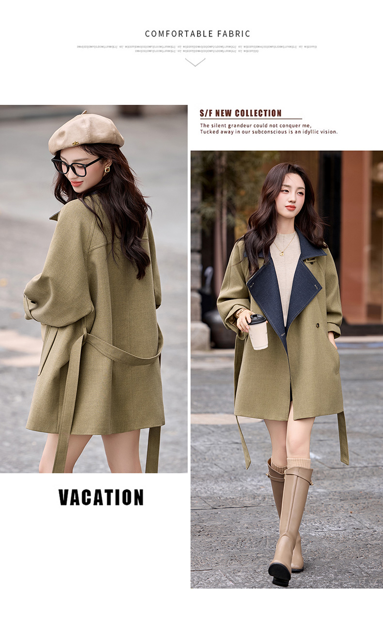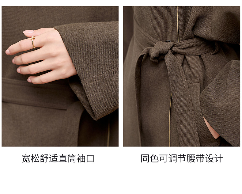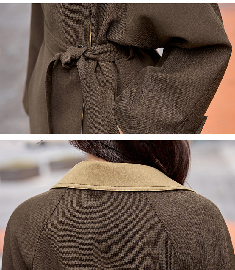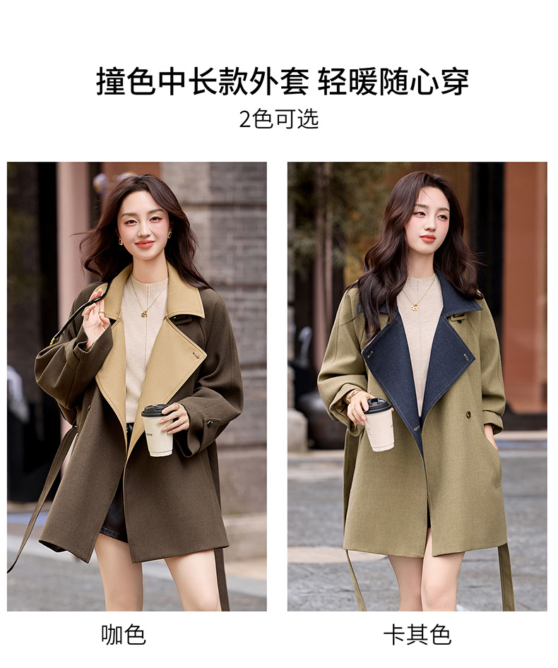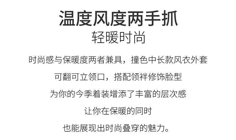 韩系翻领收腰,中长款风衣外套HR-LNS9775