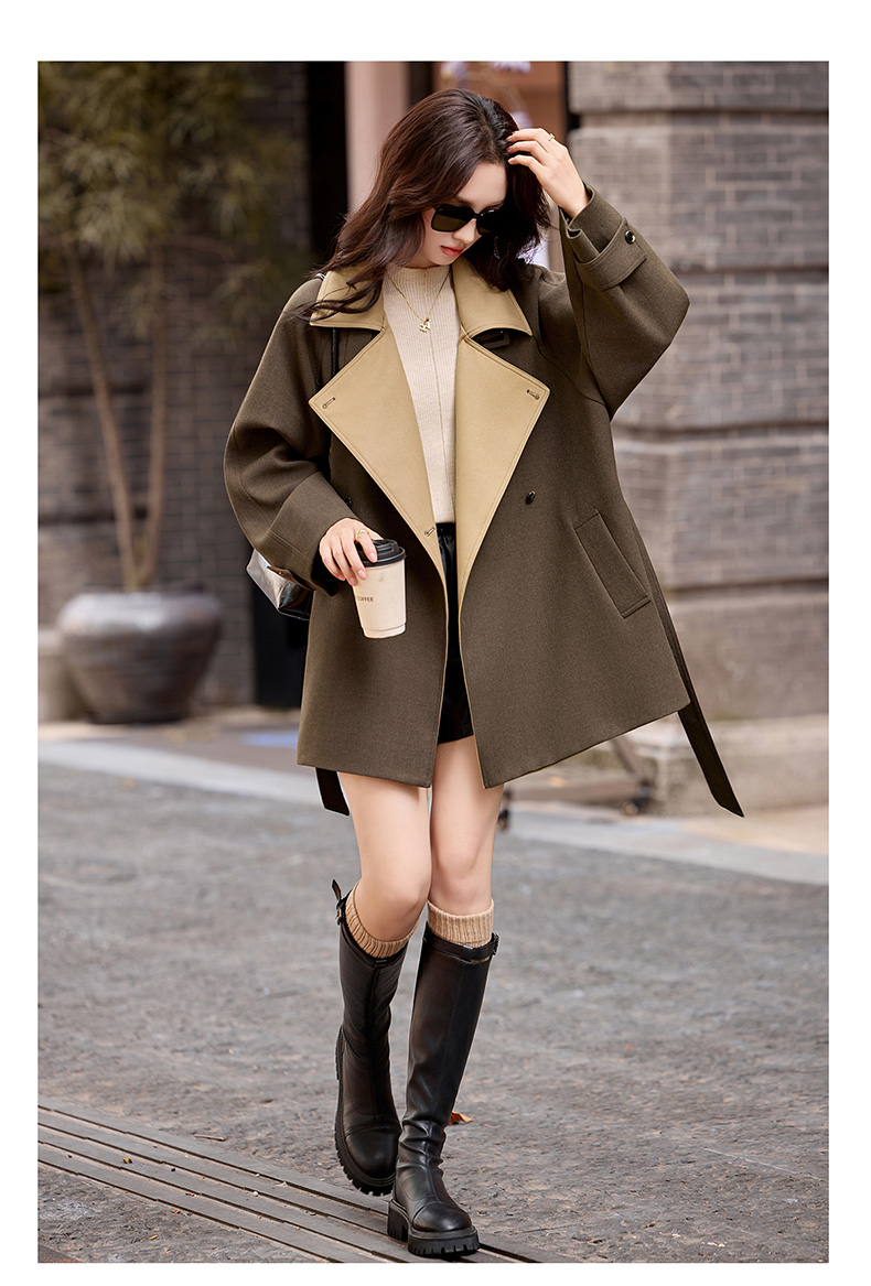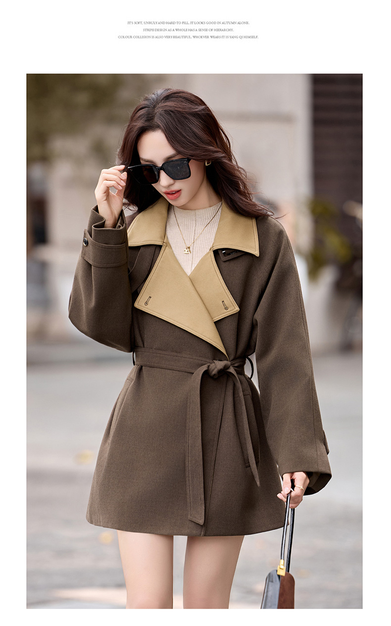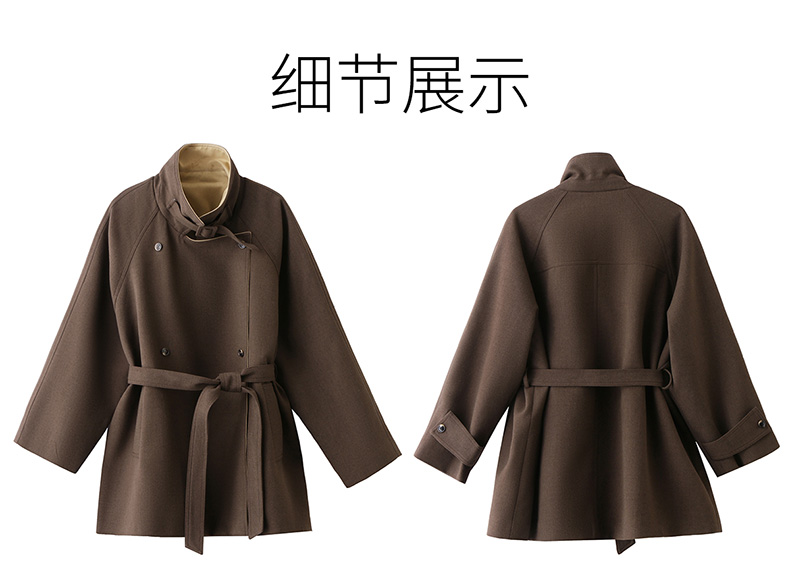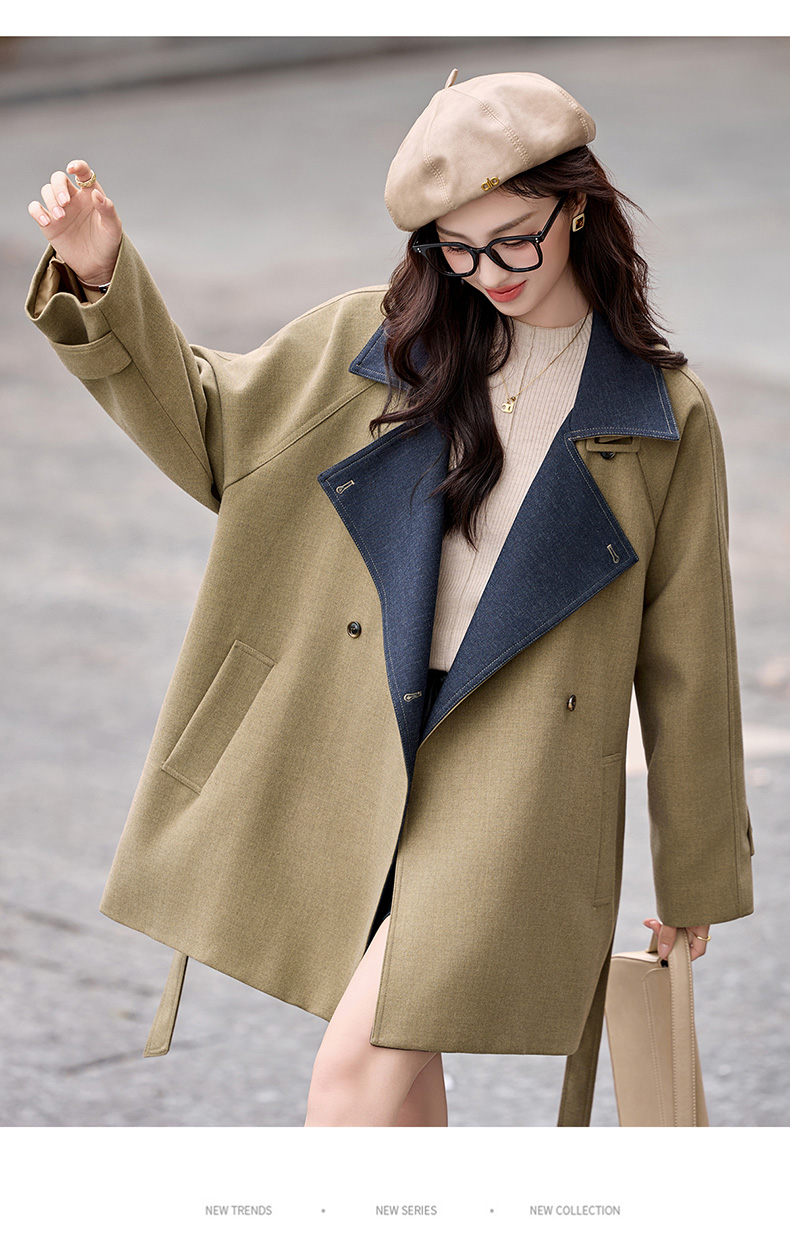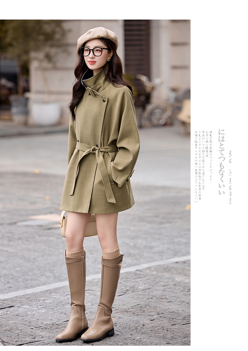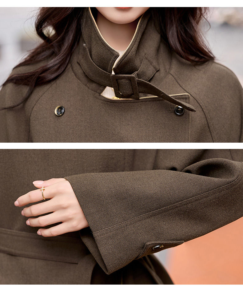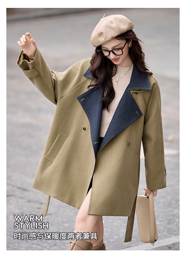 韩系翻领收腰,中长款风衣外套HR-LNS9775