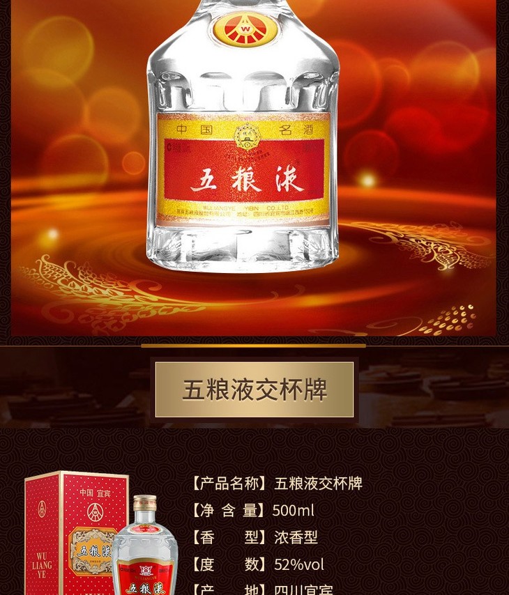 【推荐】五粮液 交杯 浓香型 52度 500ml*6 【整箱装】