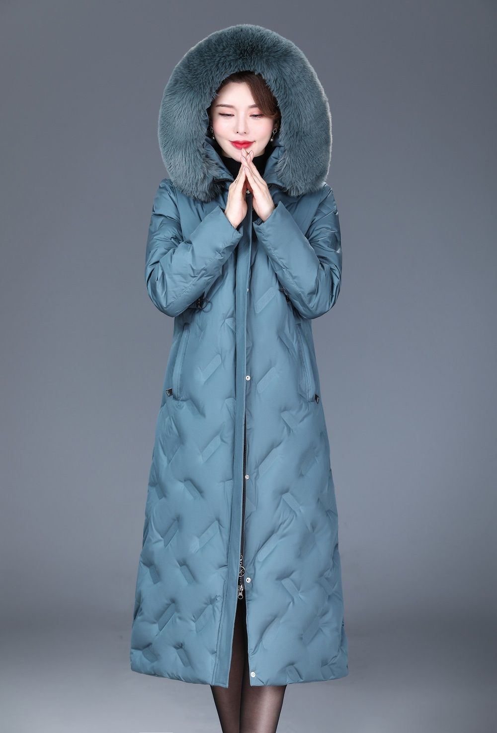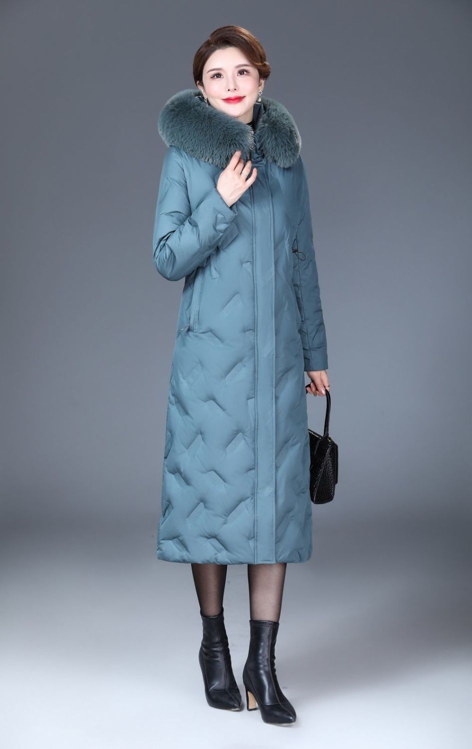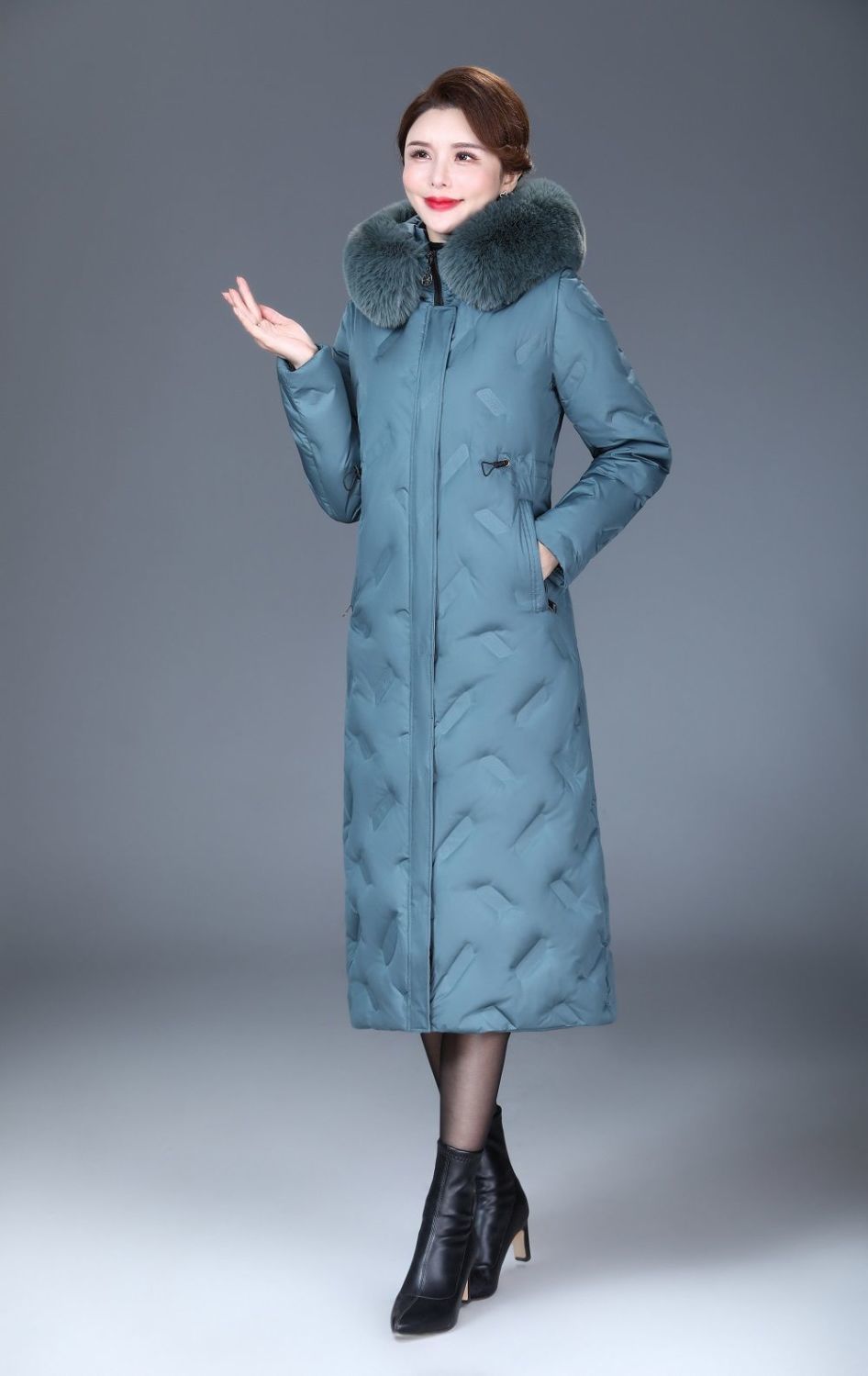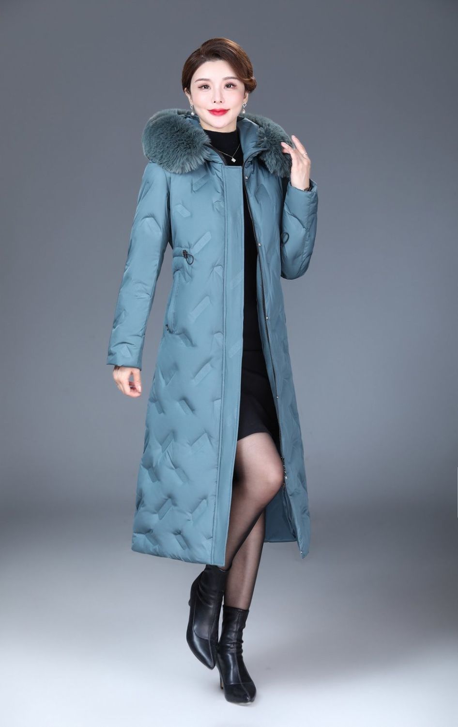 DD-2023新款3D印花蓝绿色羽绒服加长加厚加大码羽绒服修身显瘦时尚潮