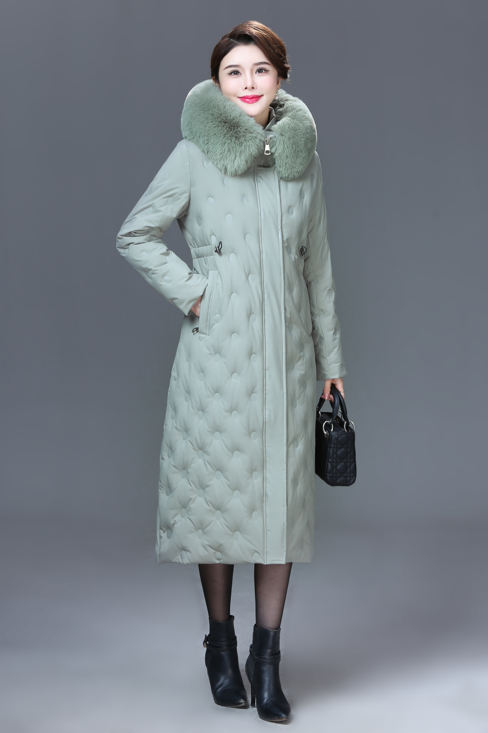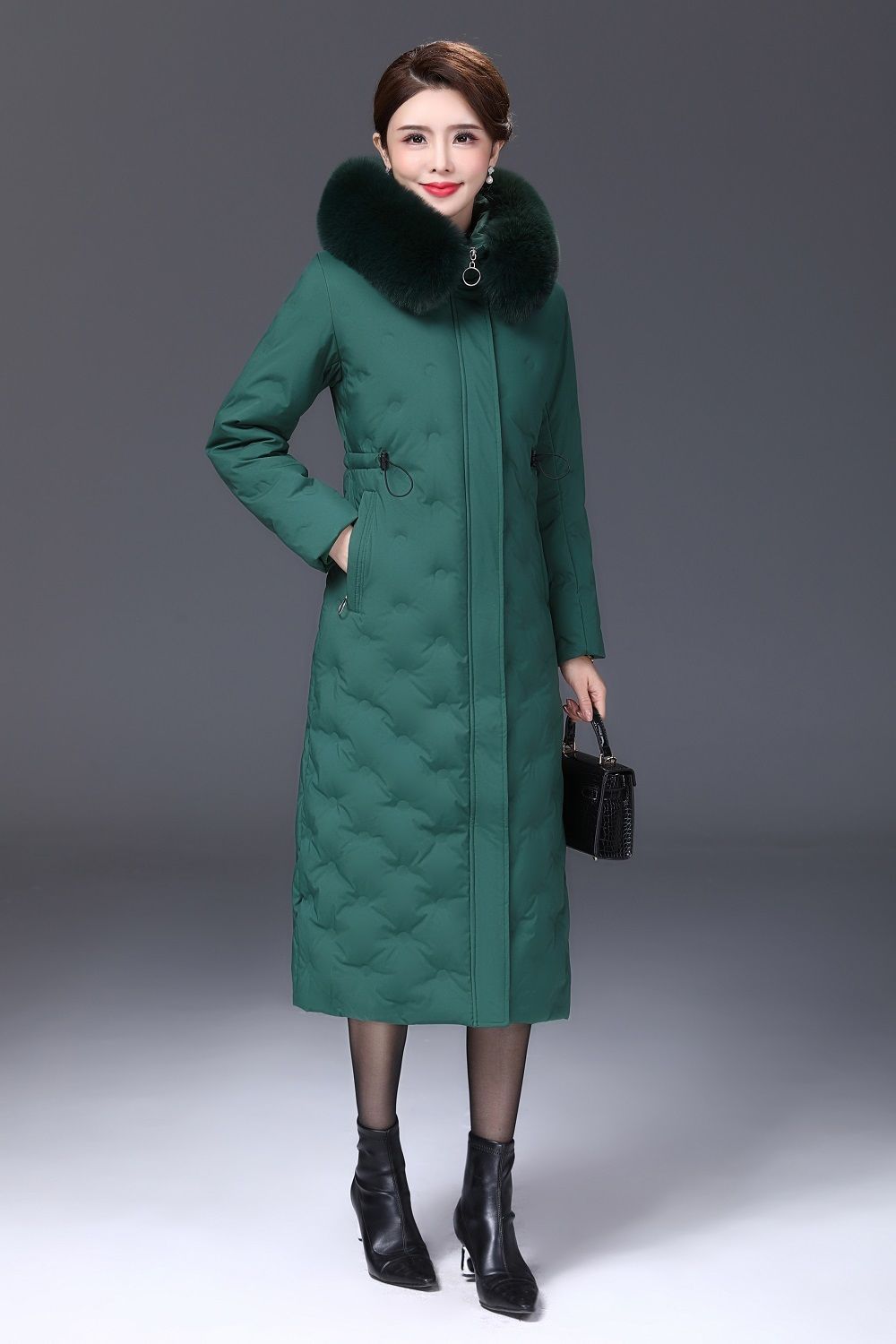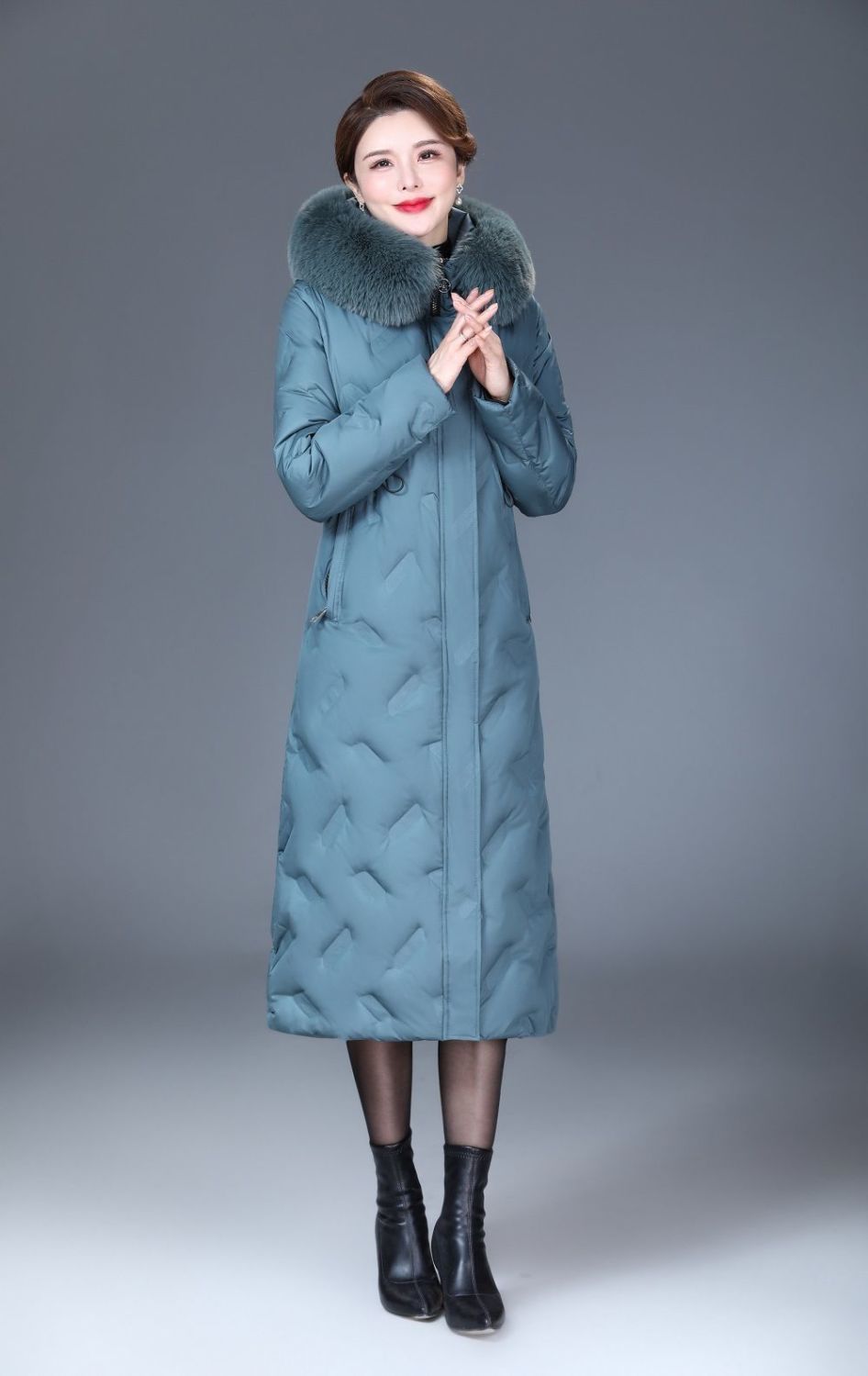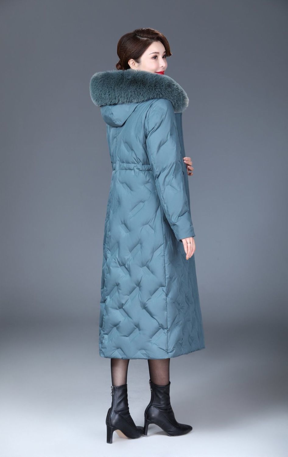 DD-2023新款3D印花蓝绿色羽绒服加长加厚加大码羽绒服修身显瘦时尚潮