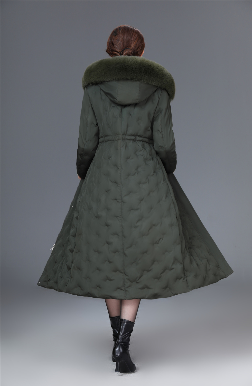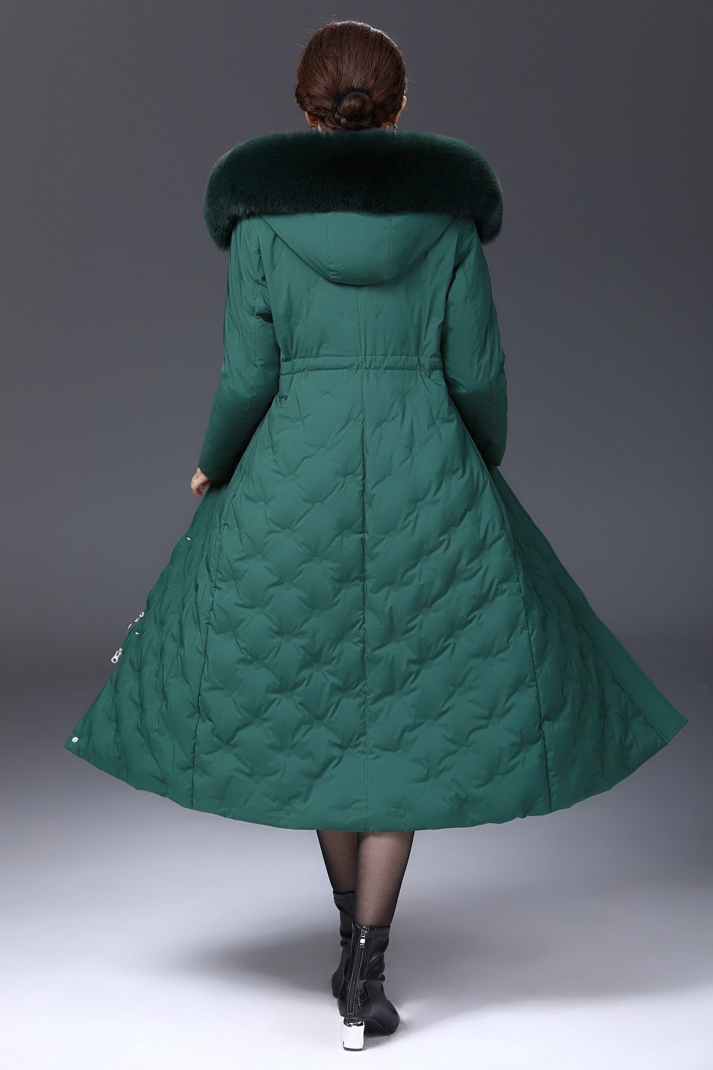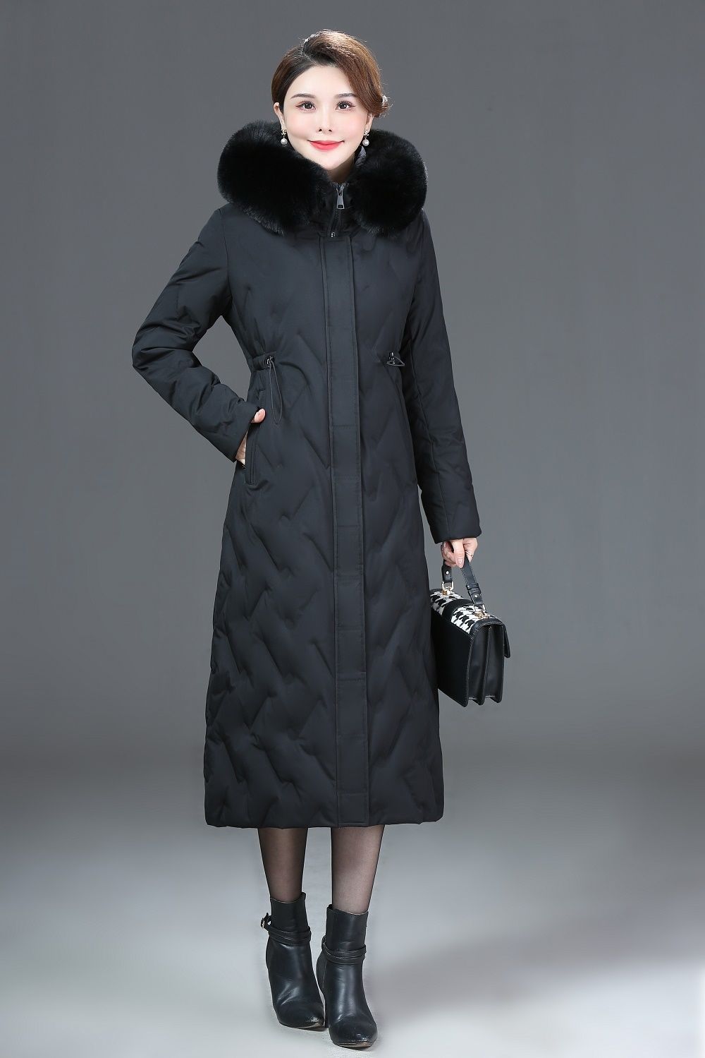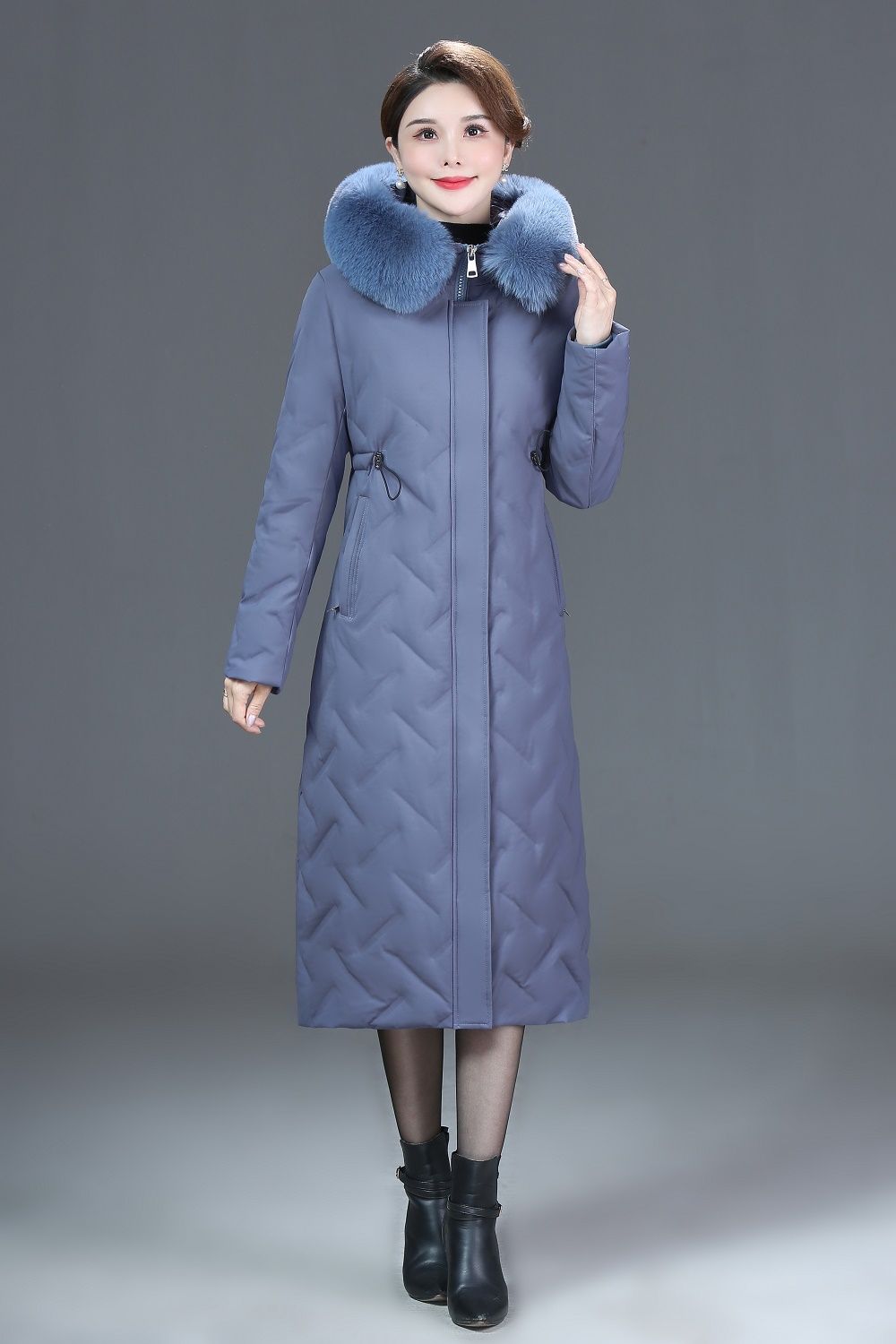 DD-2023新款3D印花蓝绿色羽绒服加长加厚加大码羽绒服修身显瘦时尚潮