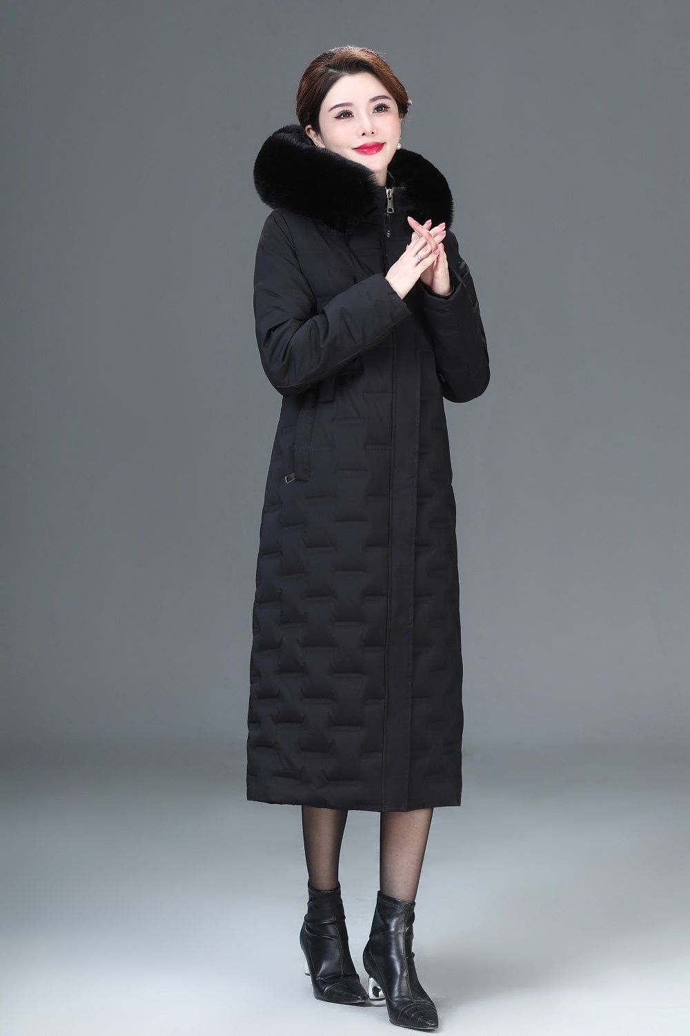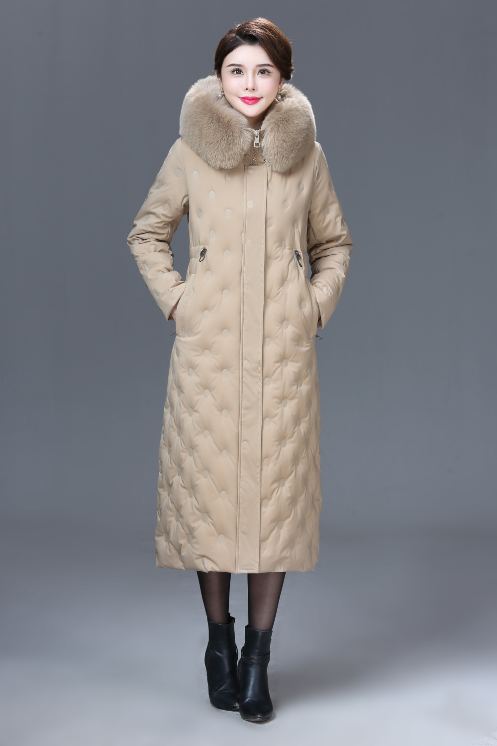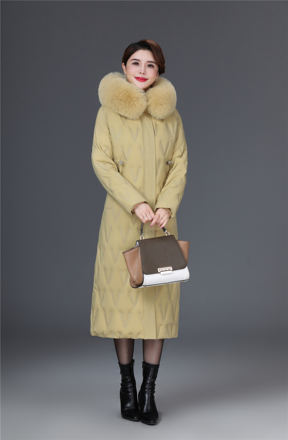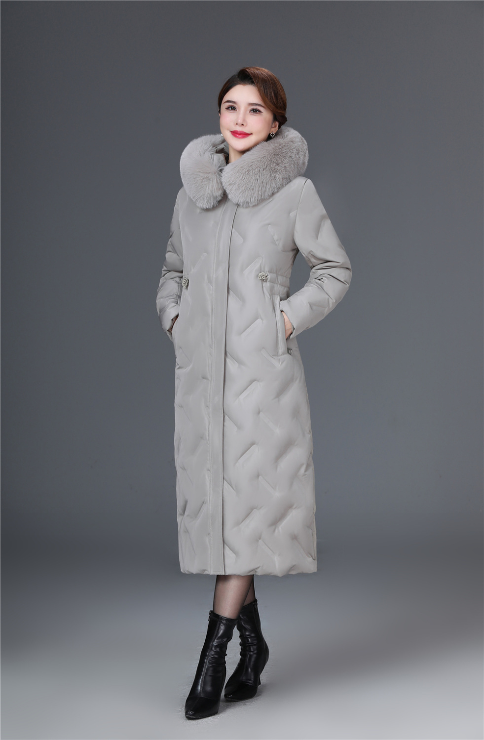 DD-2023新款3D印花蓝绿色羽绒服加长加厚加大码羽绒服修身显瘦时尚潮