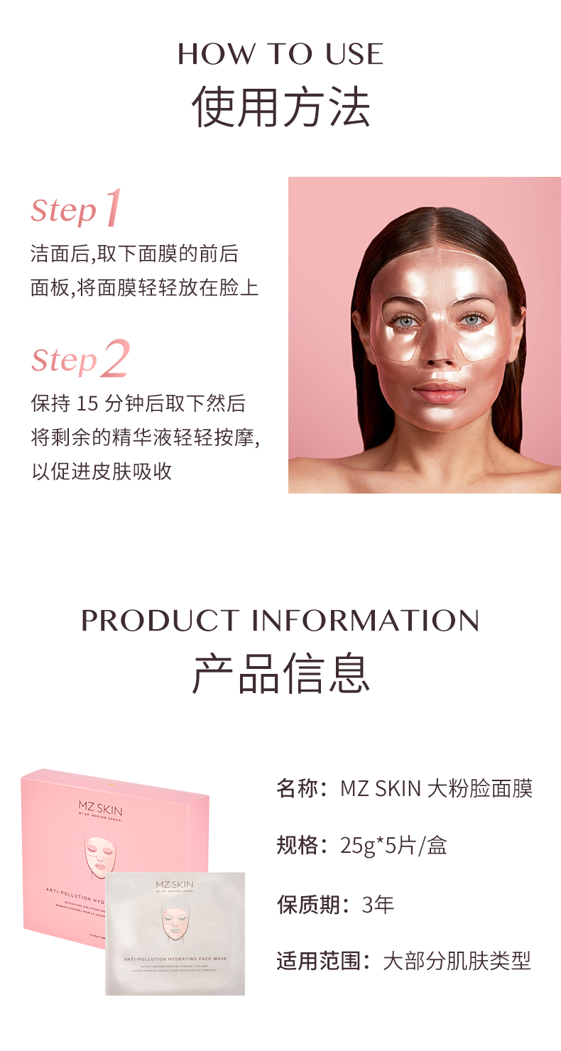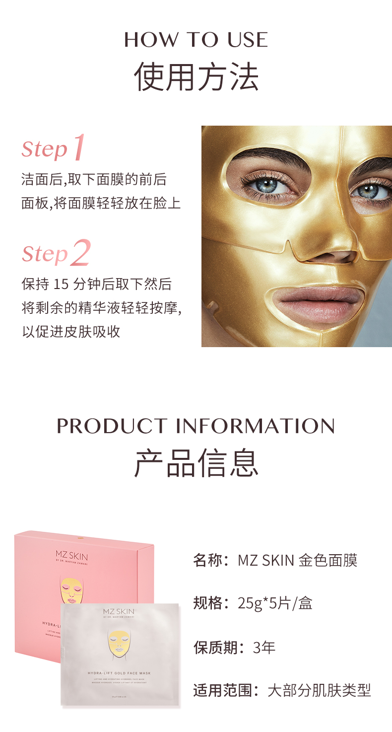 Mz Skin 大金脸面膜5片(26年10)/大粉脸面膜5片(效期27年5) 保税仓发货