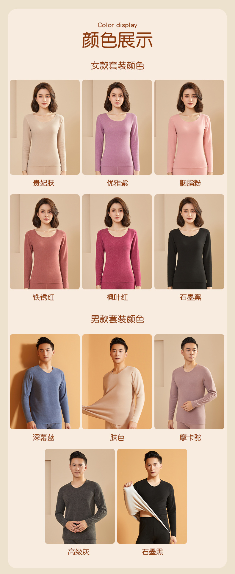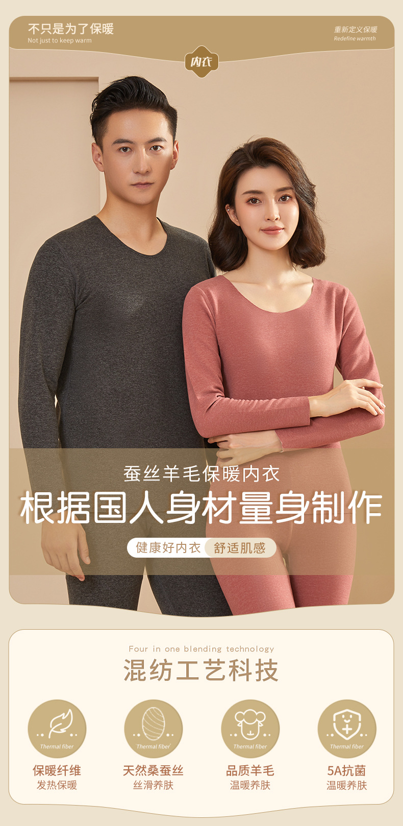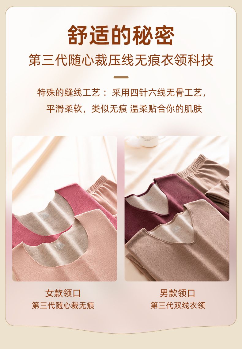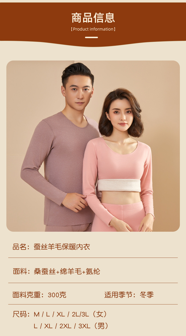 加绒加厚保暖新款,蚕丝羊毛抗菌保暖内衣套装发热男女士款秋衣秋裤LT-F8007