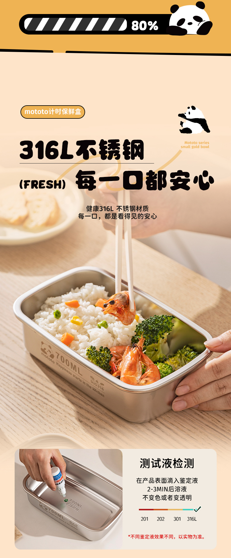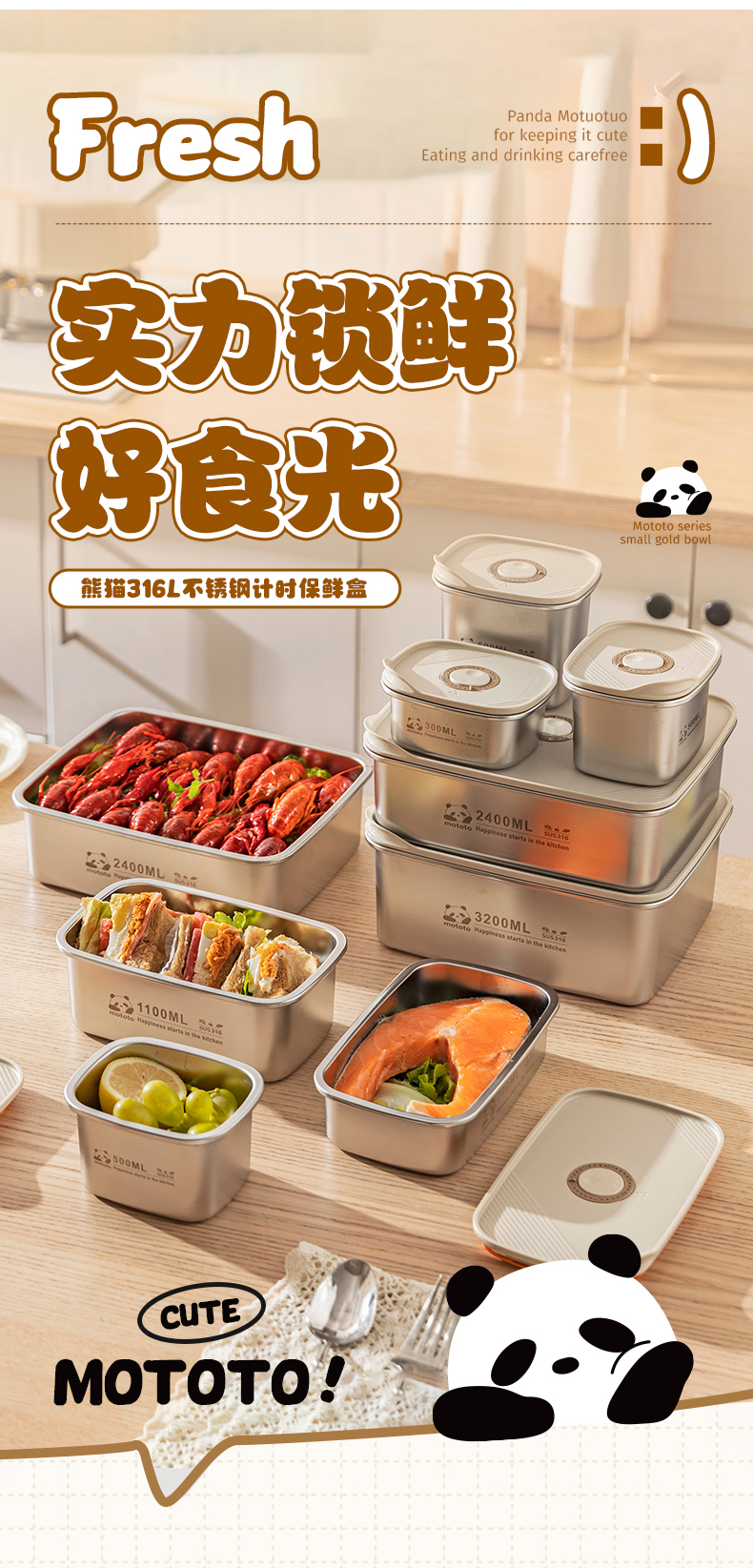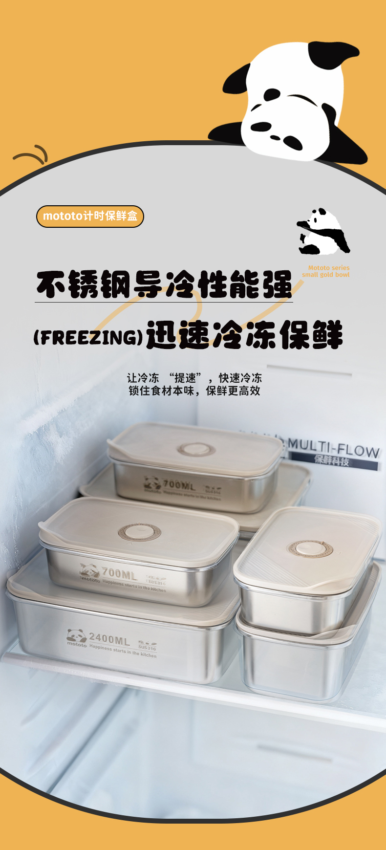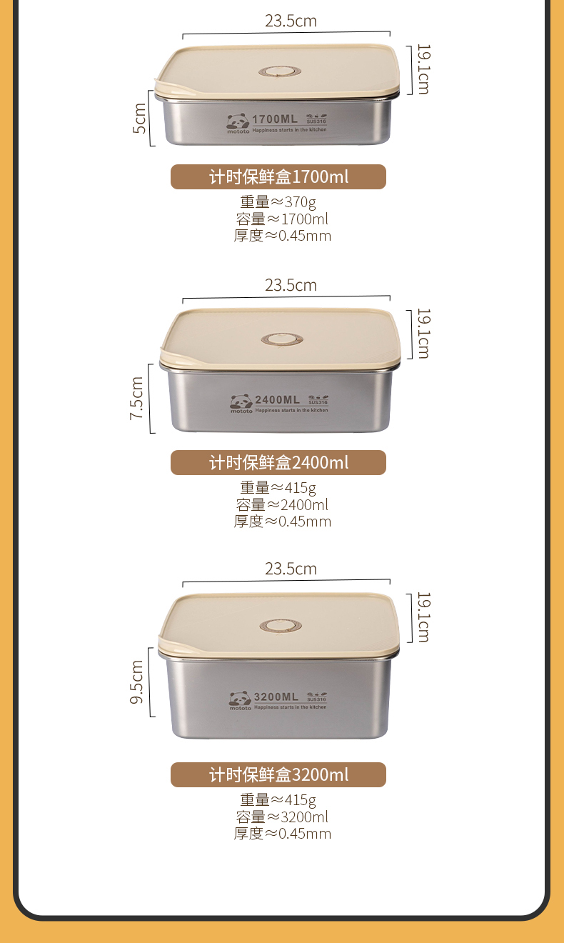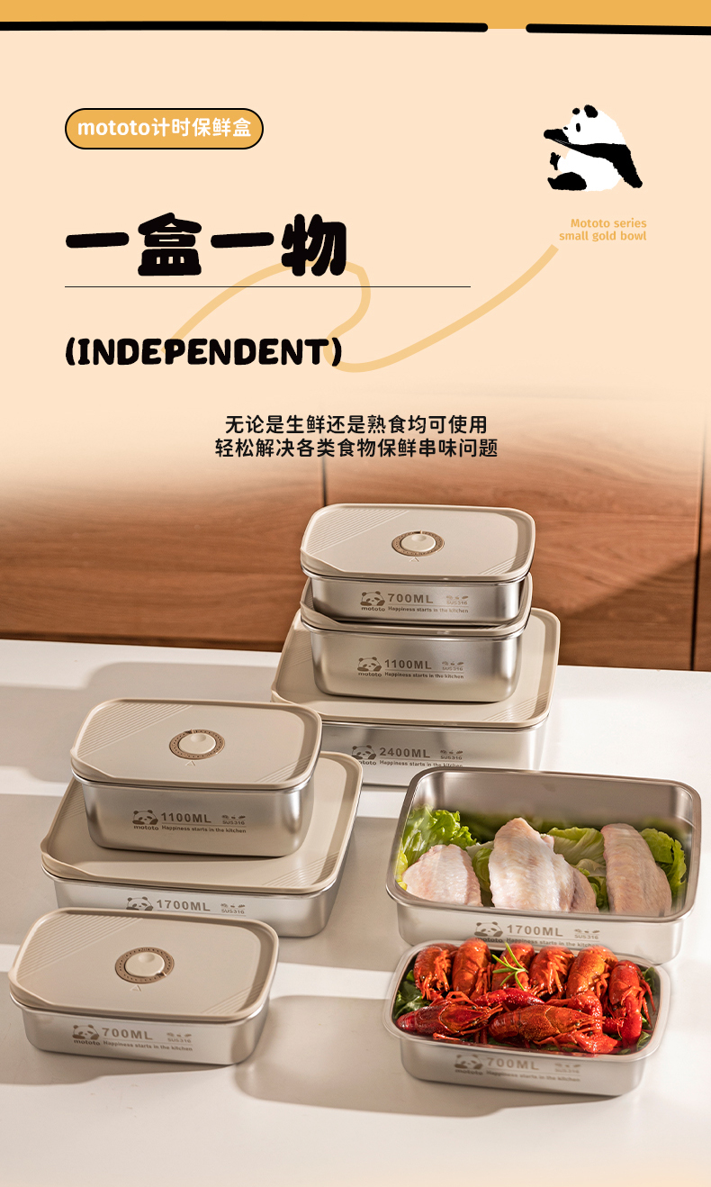 摩登主妇mototo316L不锈钢保鲜饭盒水果便当盒冰箱专用冷冻分装盒