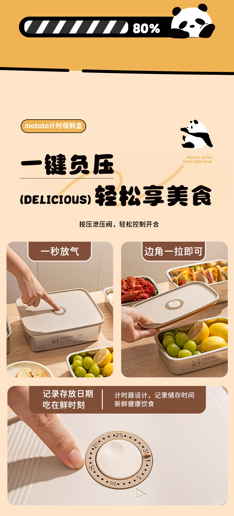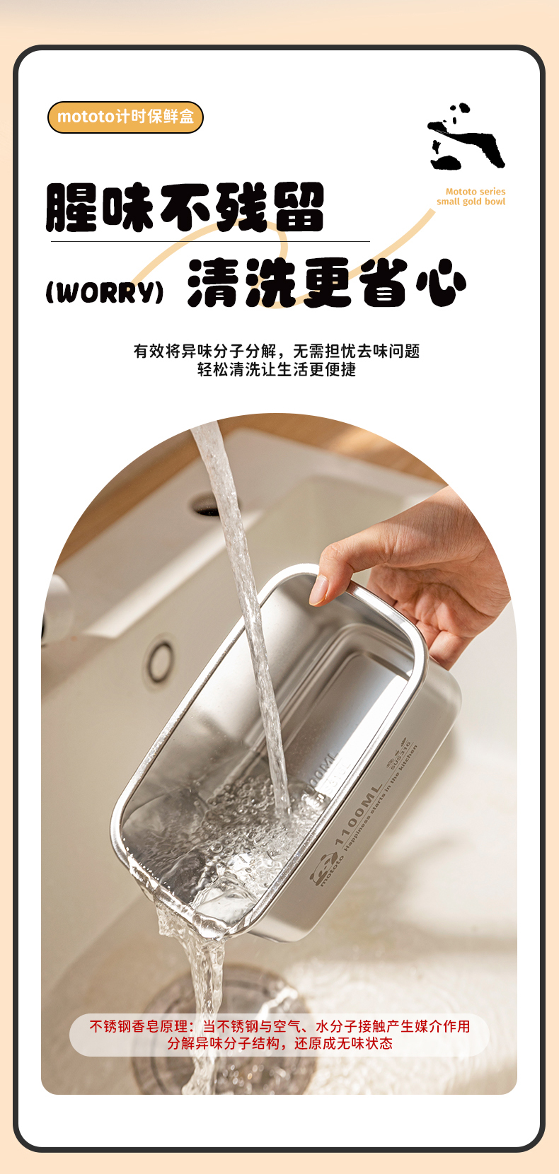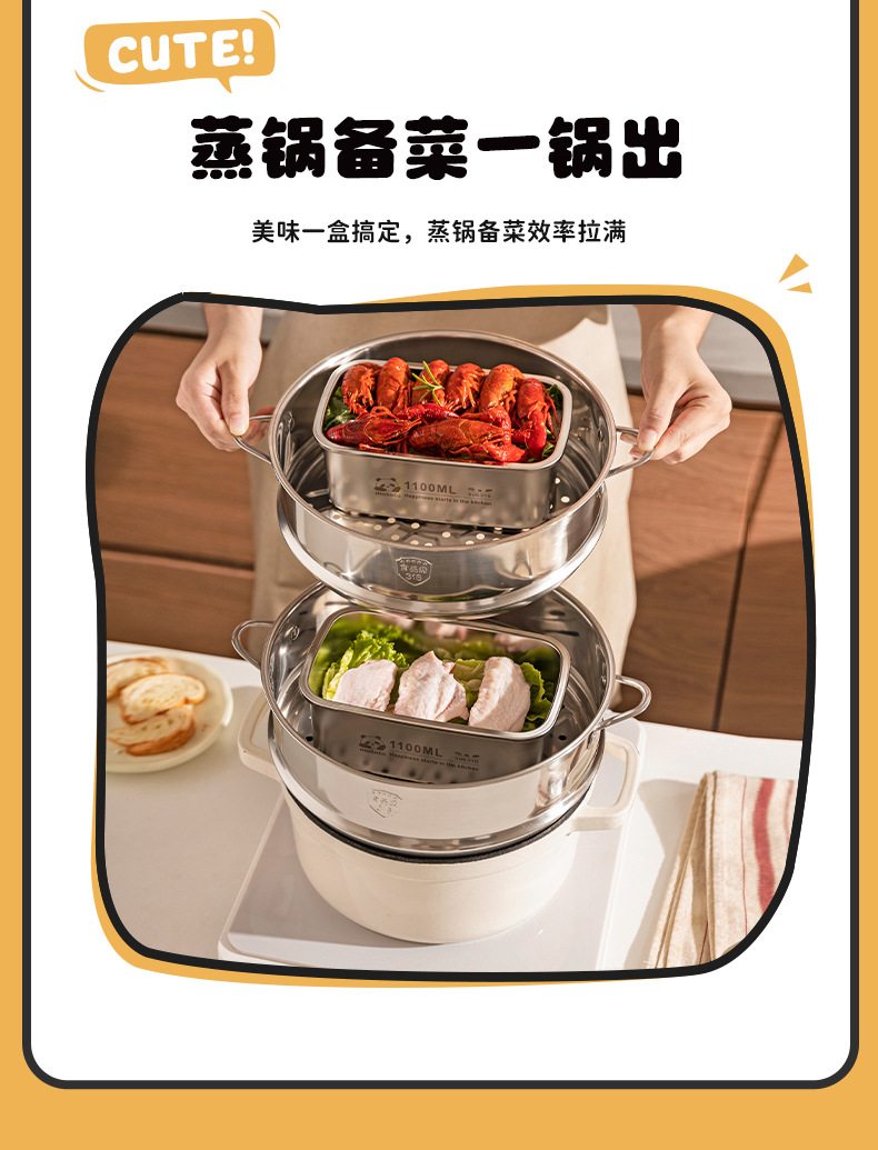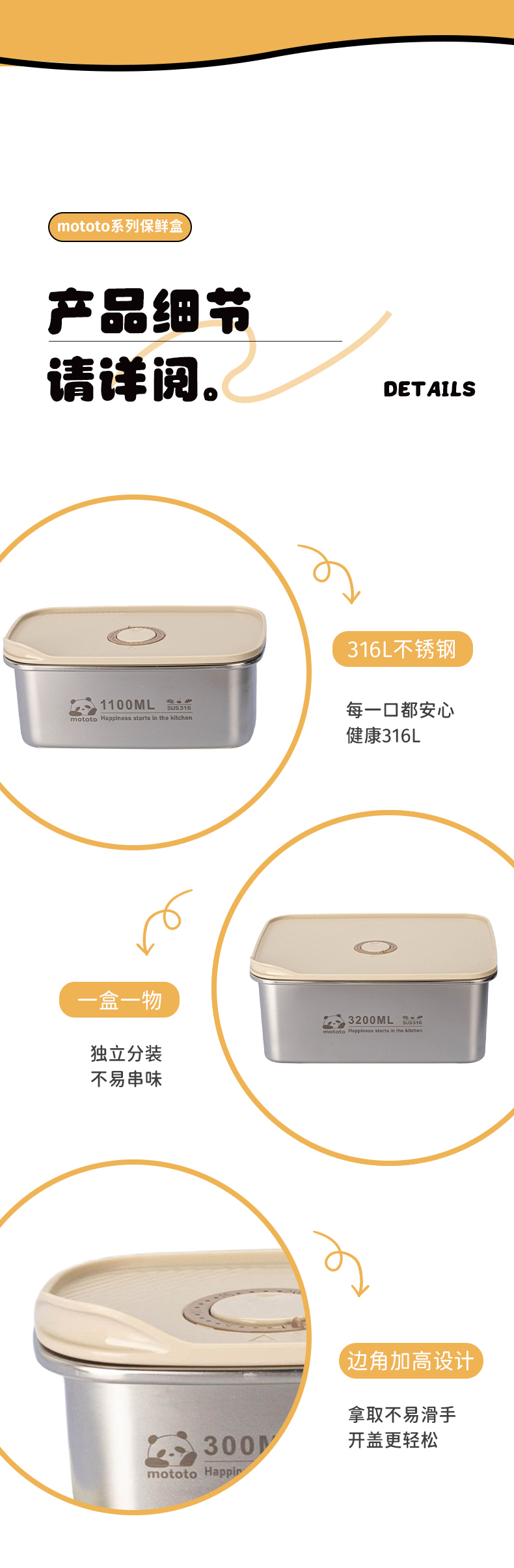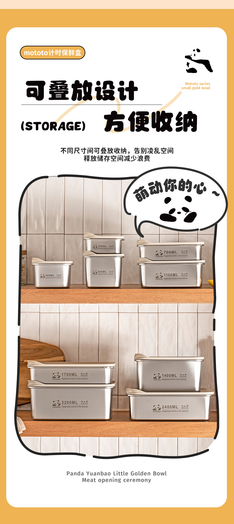 摩登主妇mototo316L不锈钢保鲜饭盒水果便当盒冰箱专用冷冻分装盒