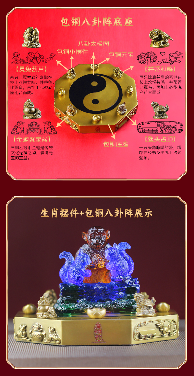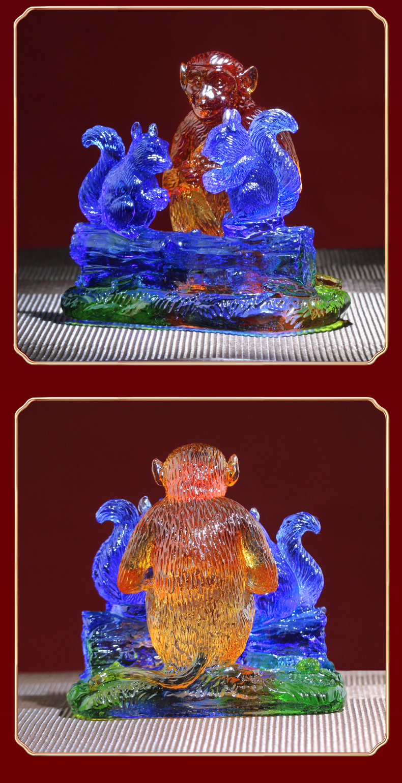 集雅轩宋韶光大师2026年新款龙 鼠猴喜合 琉璃摆件礼品