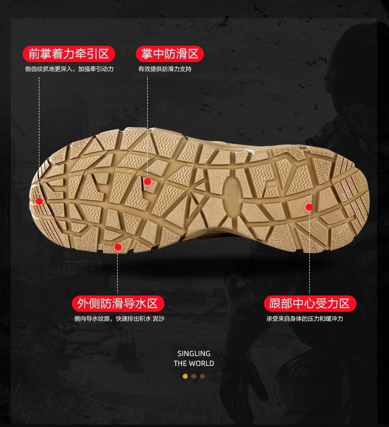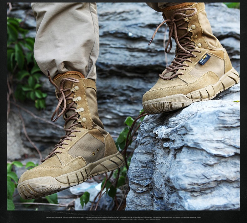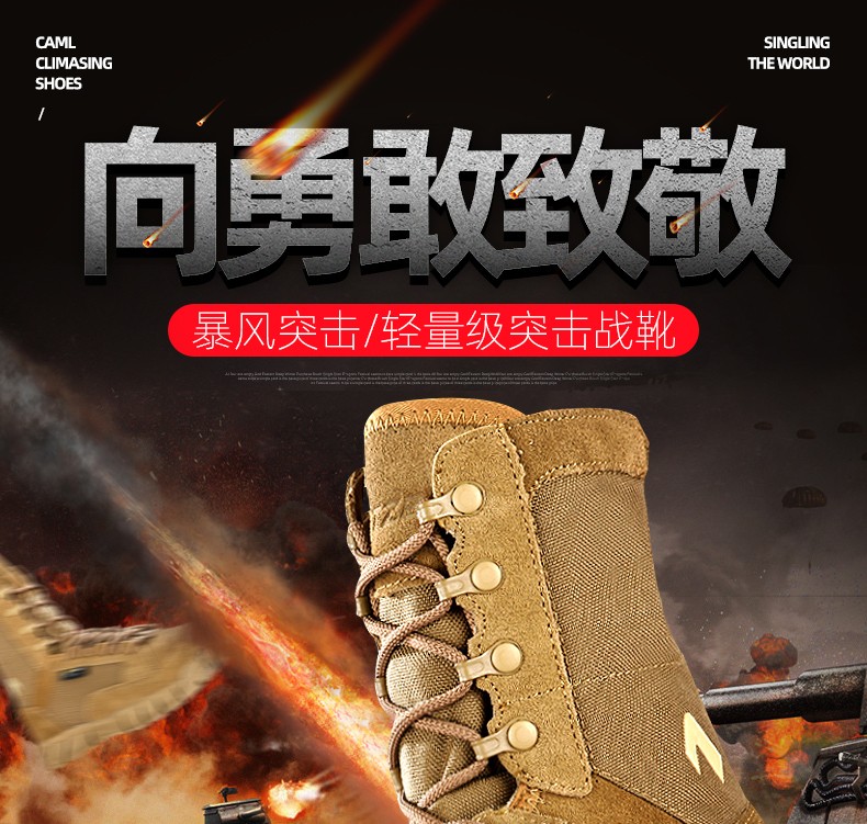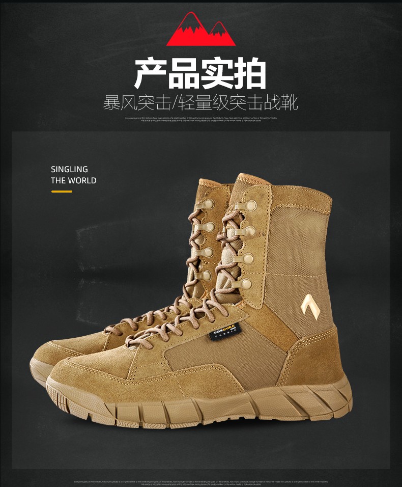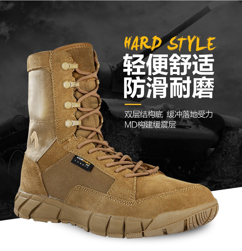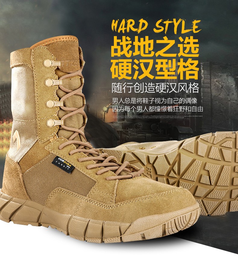【战地之选 轻盈透气 防泼耐造】208H狼棕色轻量级高帮超轻作战靴(狼棕色)ds(dq)