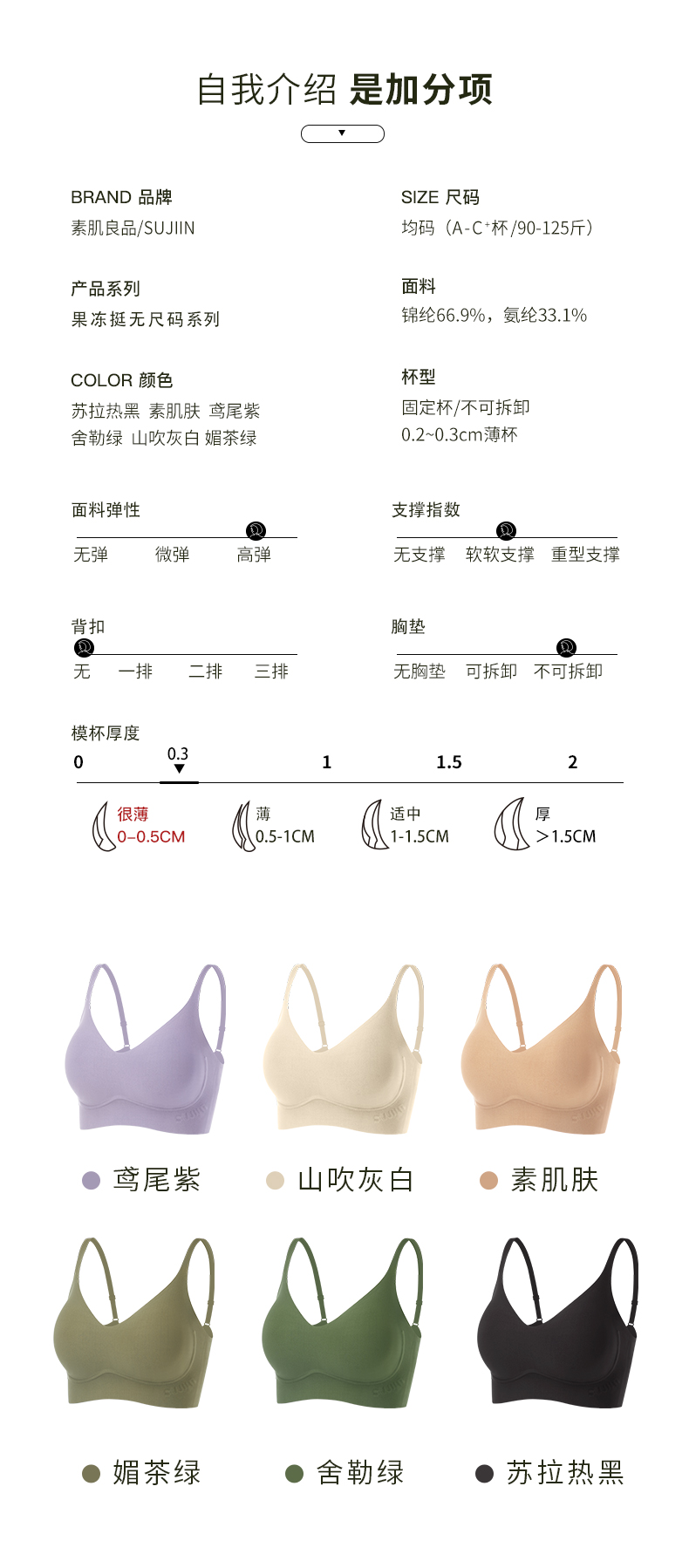 【E】素肌良品【无尺码】果冻挺软支撑内衣- 轻薄吊带款MX160F