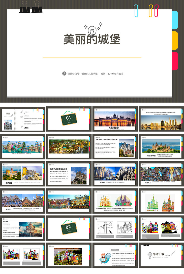 通过欣赏和观察城堡的相关素材,结合自己的想象和创意设计美丽的城堡,注意表现出城堡的高低错落,以及形态的的不同变化,锻炼了小朋友们的锻炼观察和表现能力。