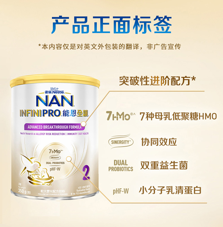【新品上市】Nestle雀巢能恩全护7HMO较大婴儿配方奶粉2段350g(效期28年2月)