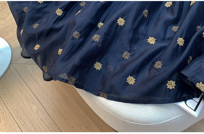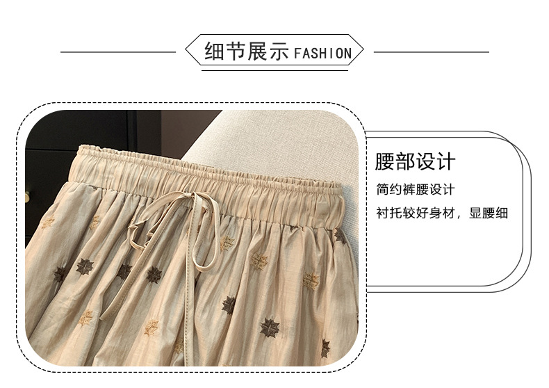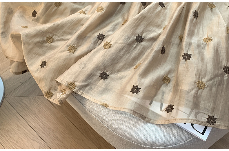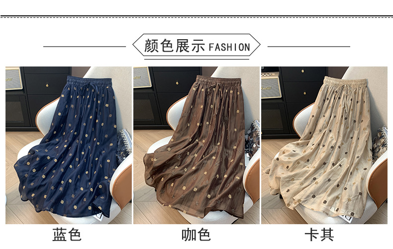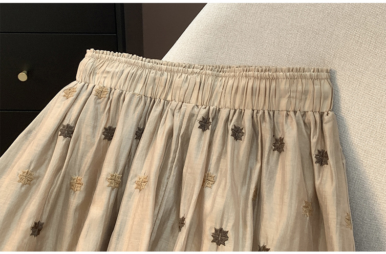 百媚生 文艺刺绣简约双层半身裙松紧腰抽绳A字裙子8967 文艺刺绣简约双层半身裙松紧腰抽绳A字裙子8967