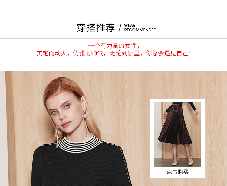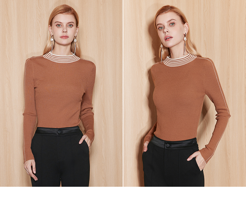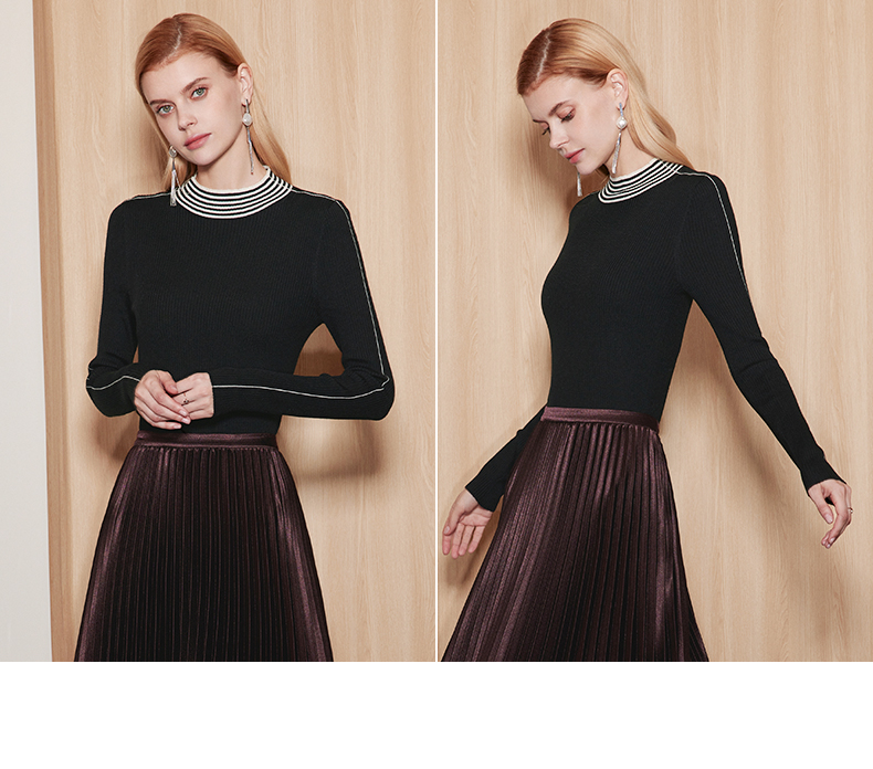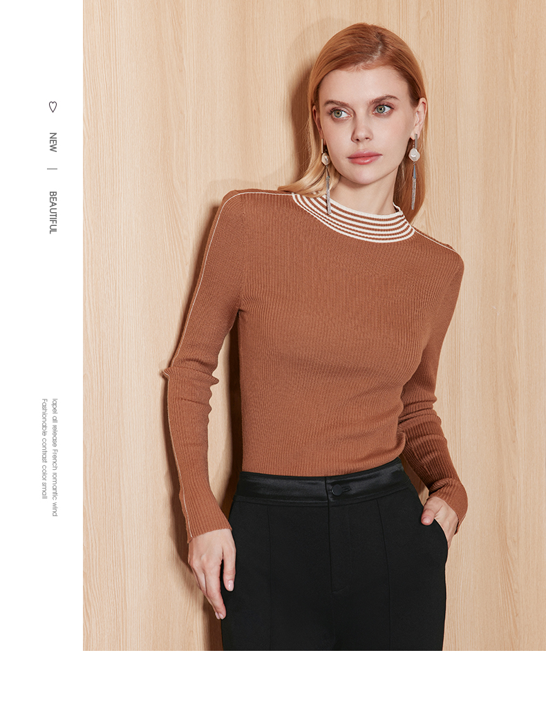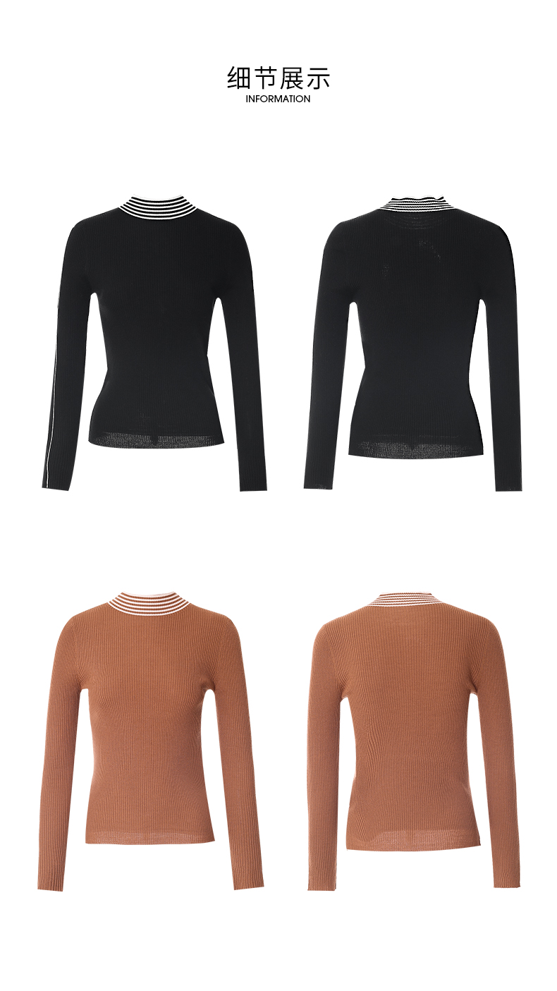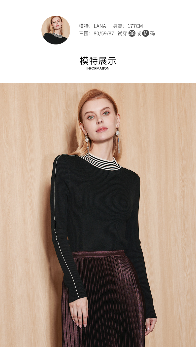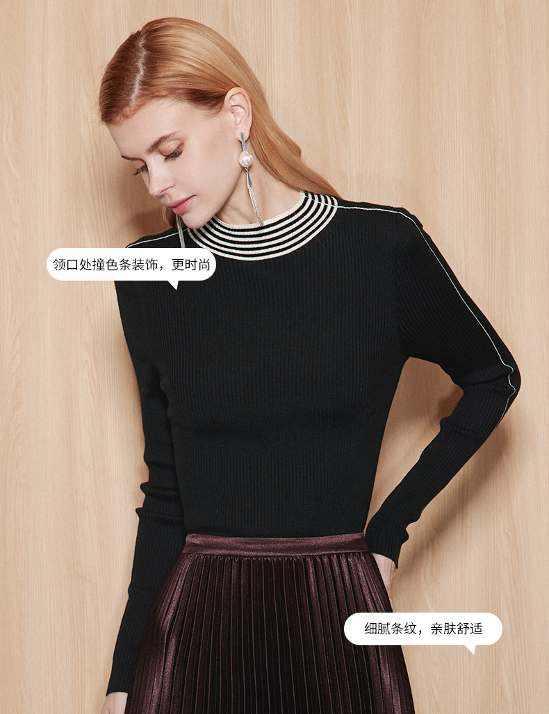 EITIE爱特爱秋季新款通勤简约半高领显瘦修身针织衫女上衣7101810