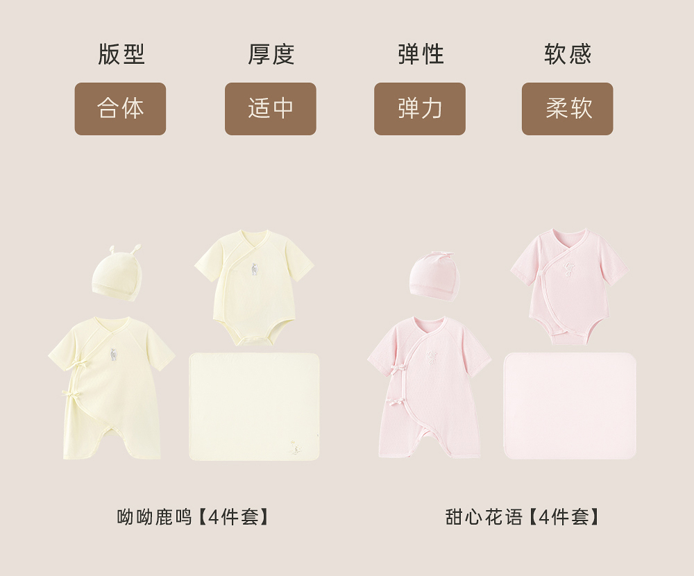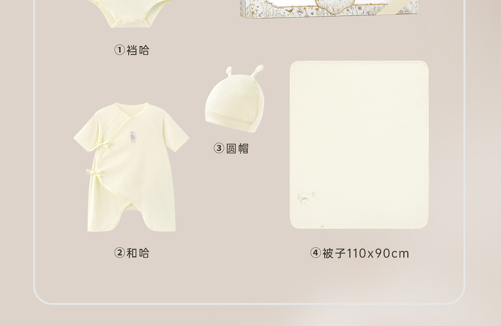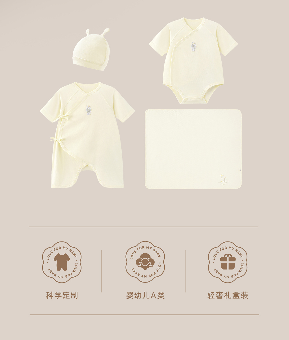 【商场同款】英氏婴儿衣服送礼礼盒4件套新生儿衣服短袖春夏透气