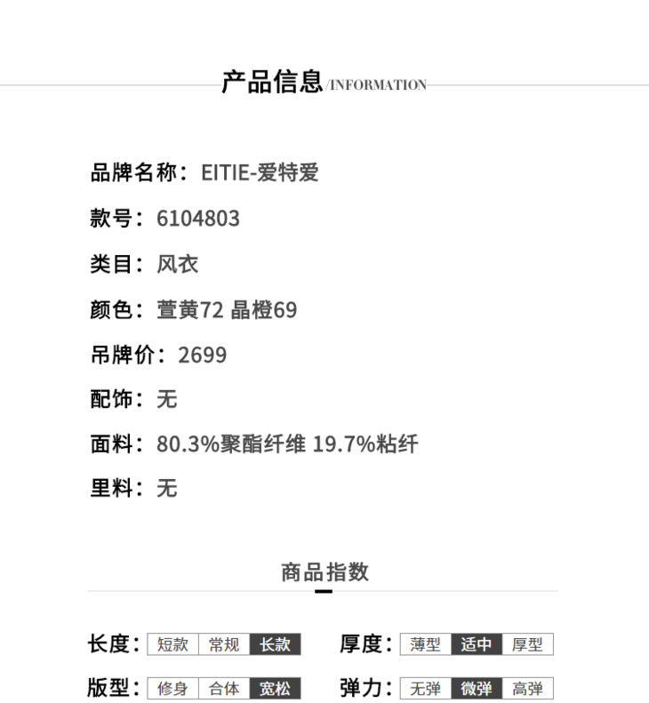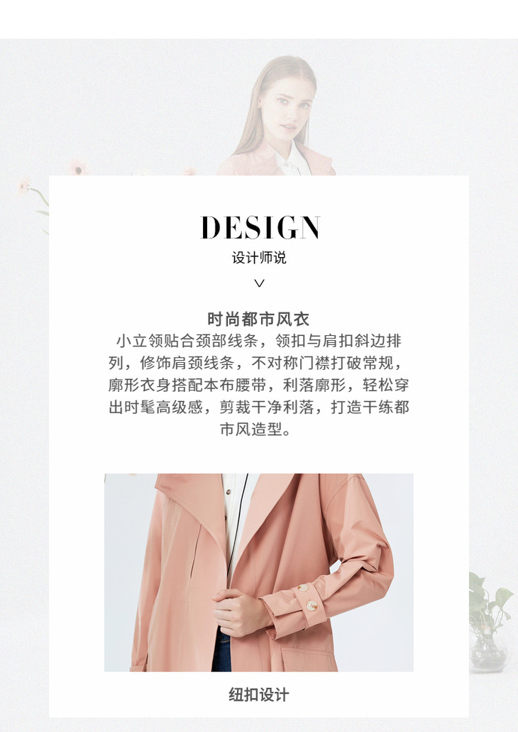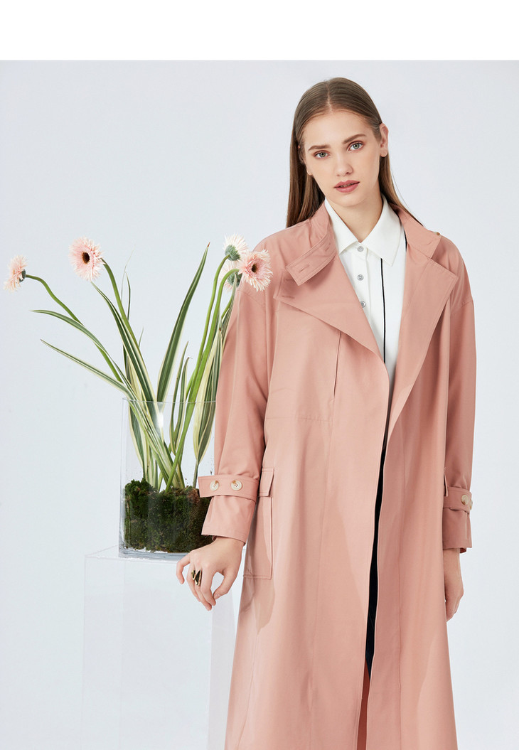 EITIE爱特爱秋季新款时尚慵懒廓形宽松翻驳领收腰风衣女外套6104803