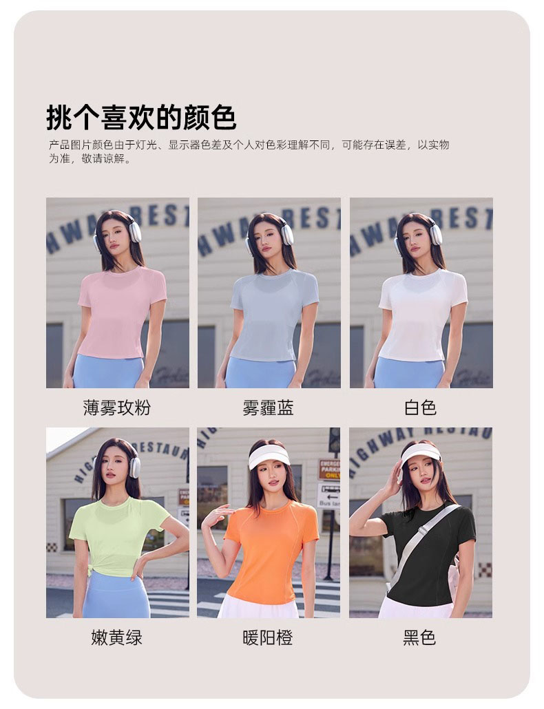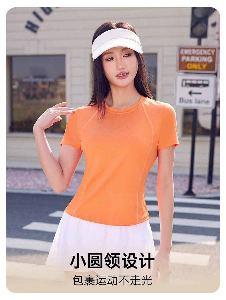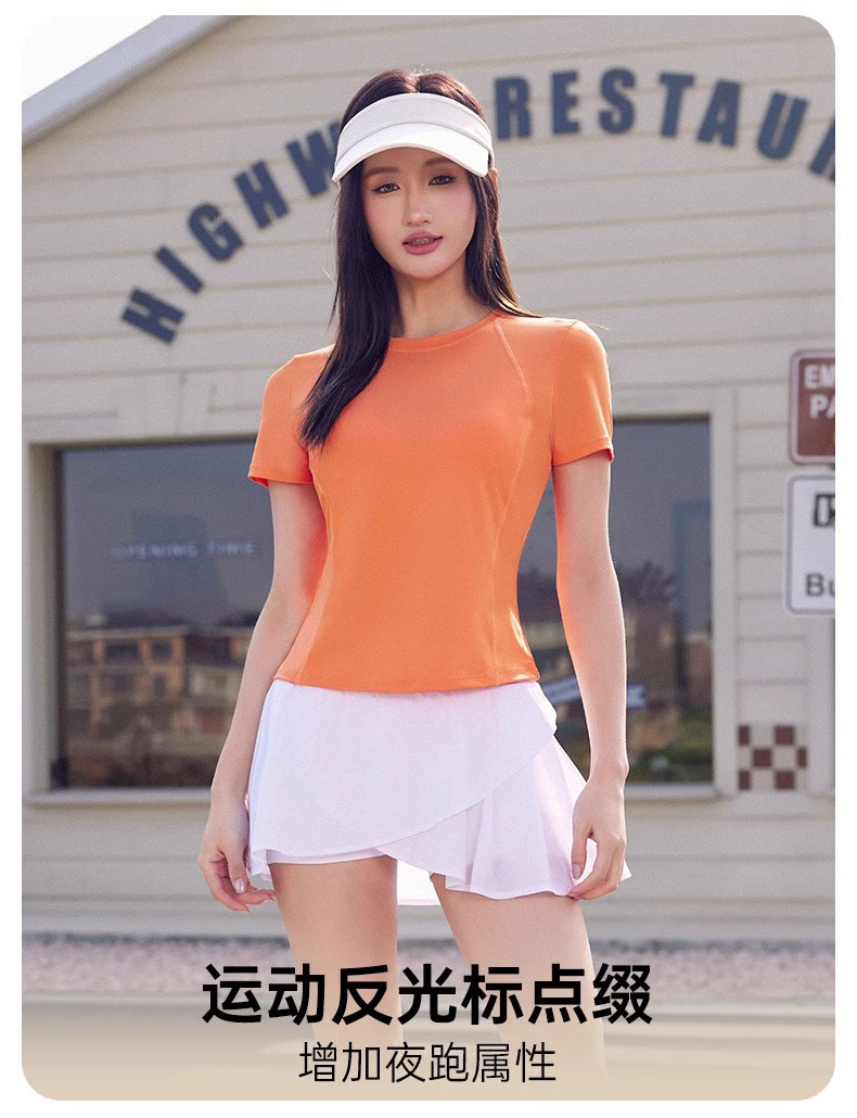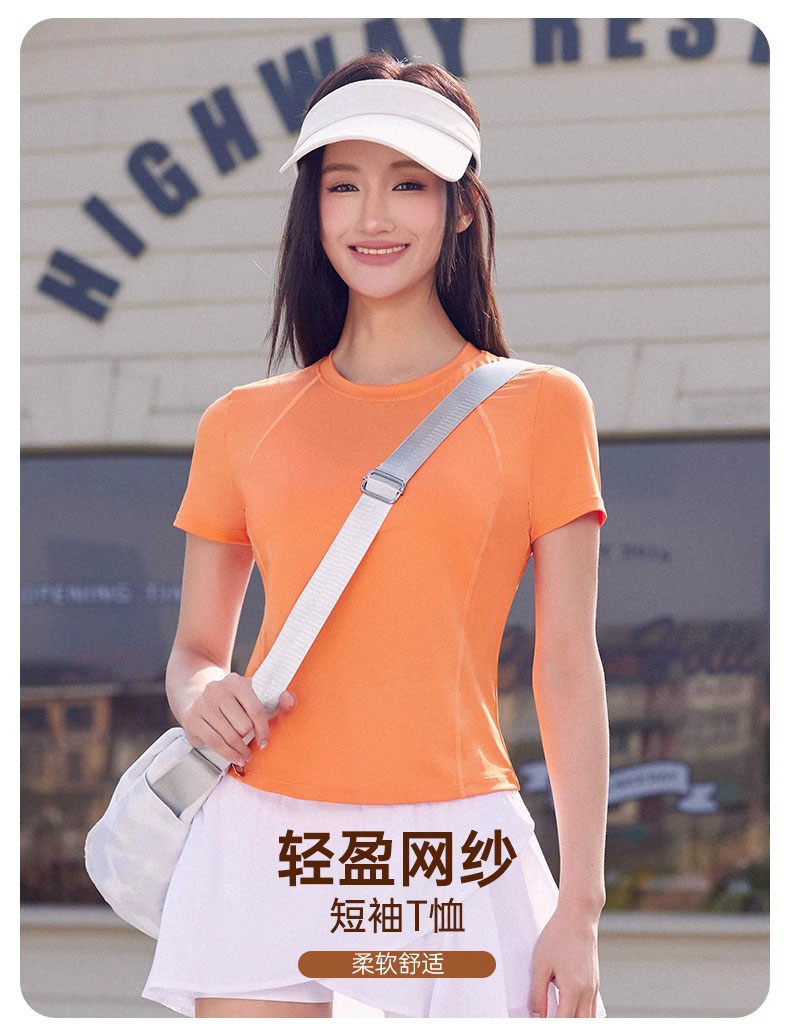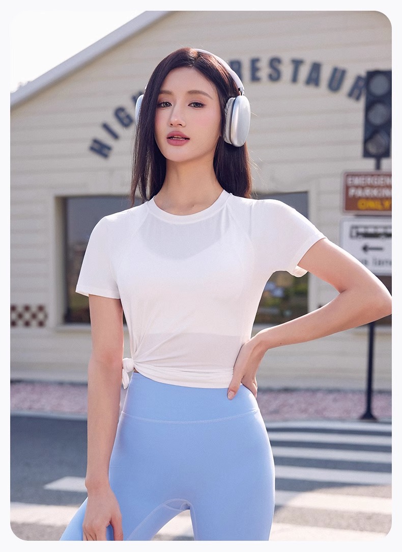 跃牌【瑜见伽人系列】休闲宽松收腰网纱拼接运动短袖YT3096(无胸垫)
