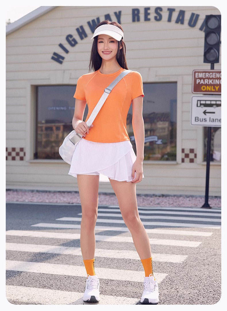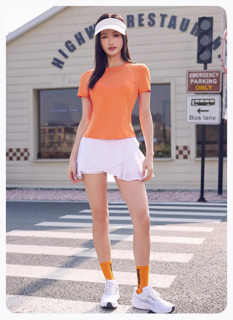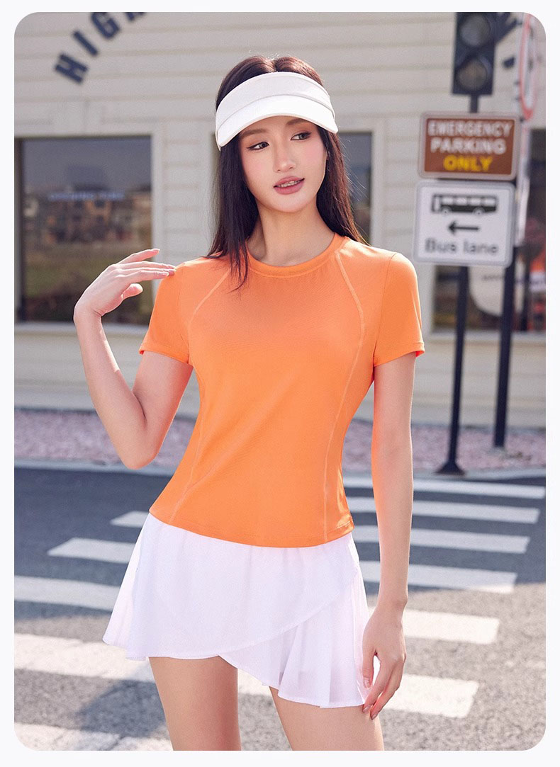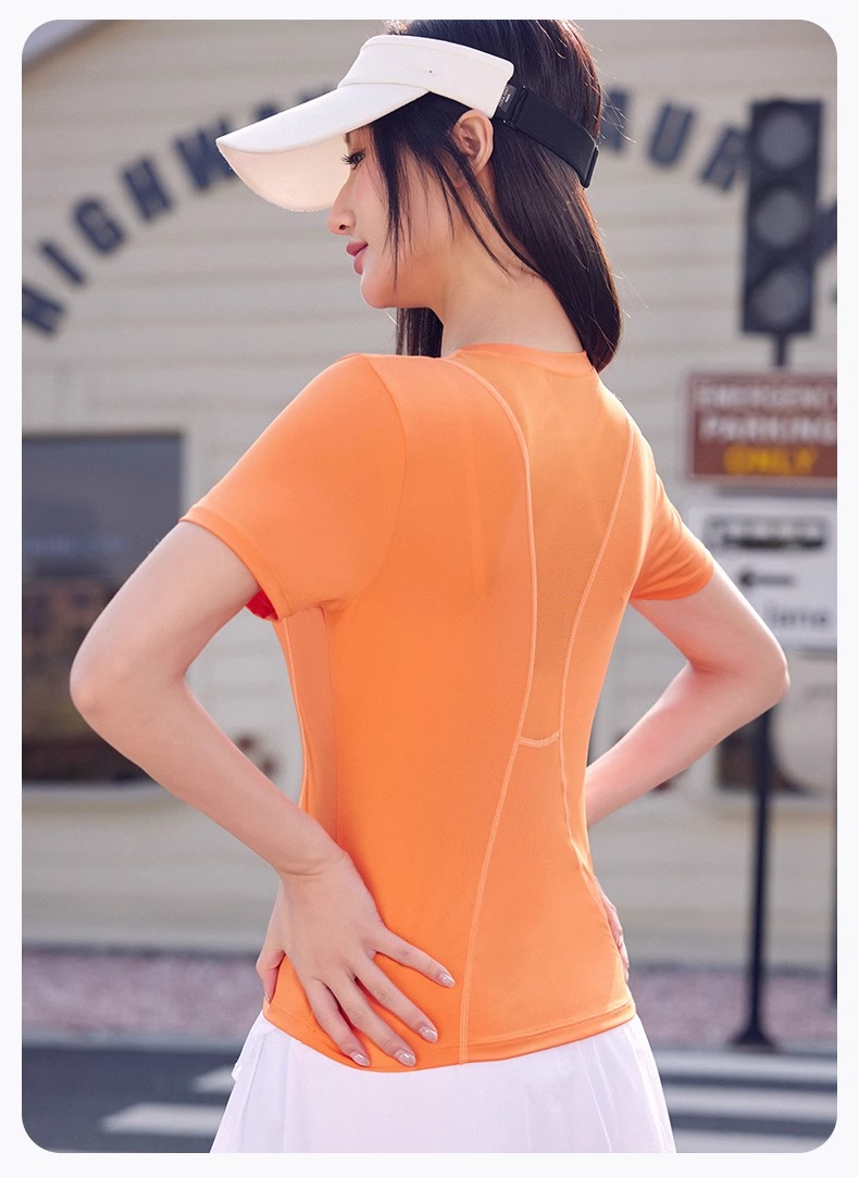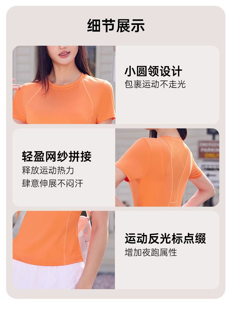 跃牌【瑜见伽人系列】休闲宽松收腰网纱拼接运动短袖YT3096(无胸垫)