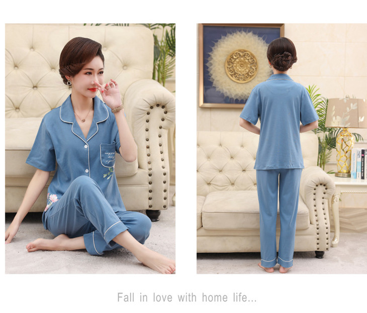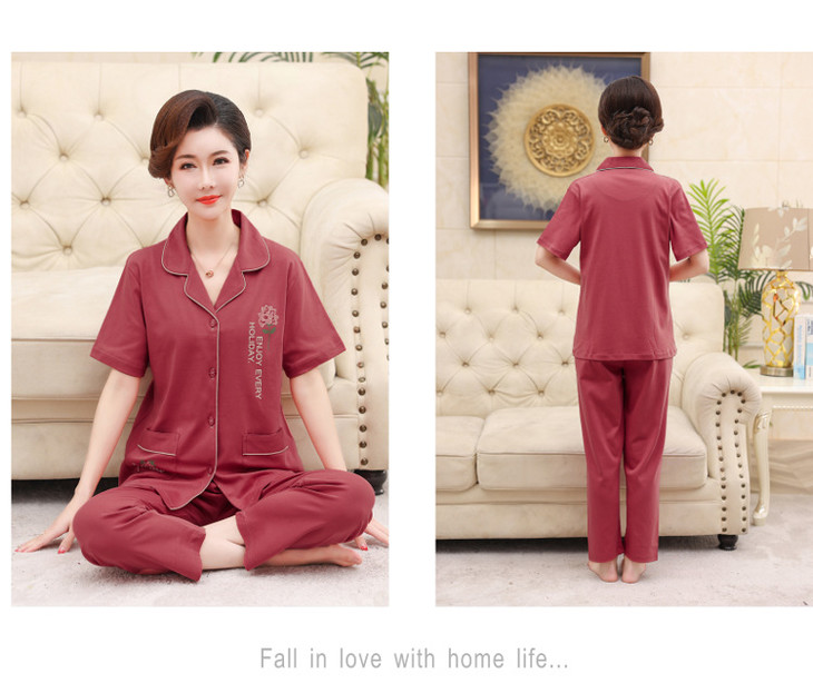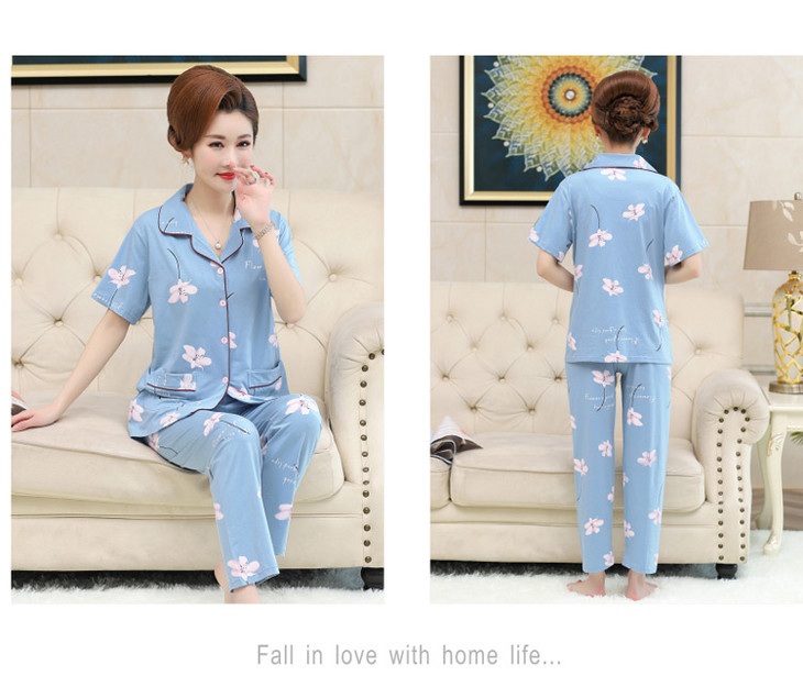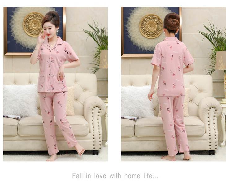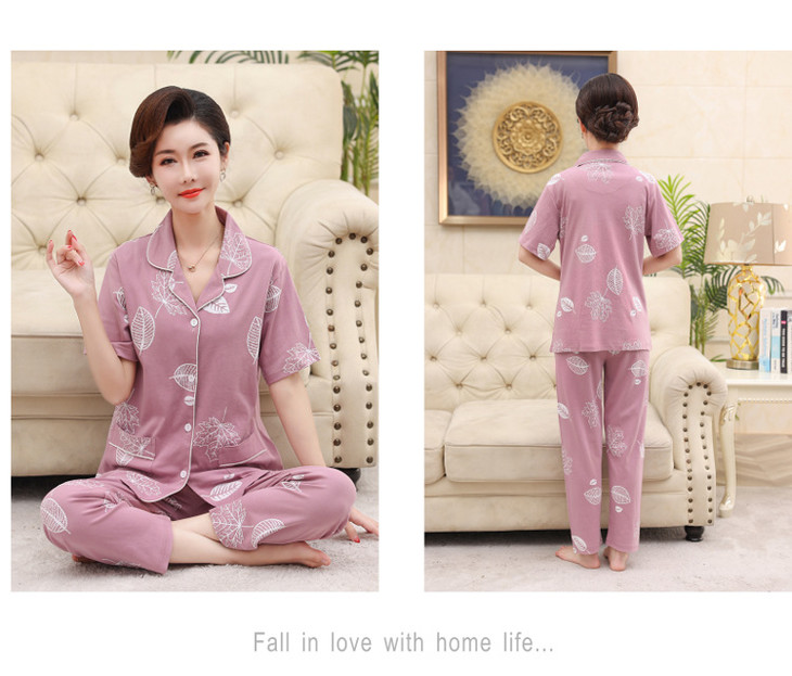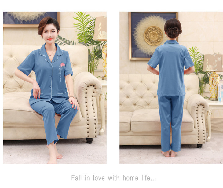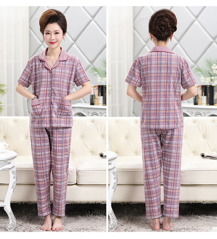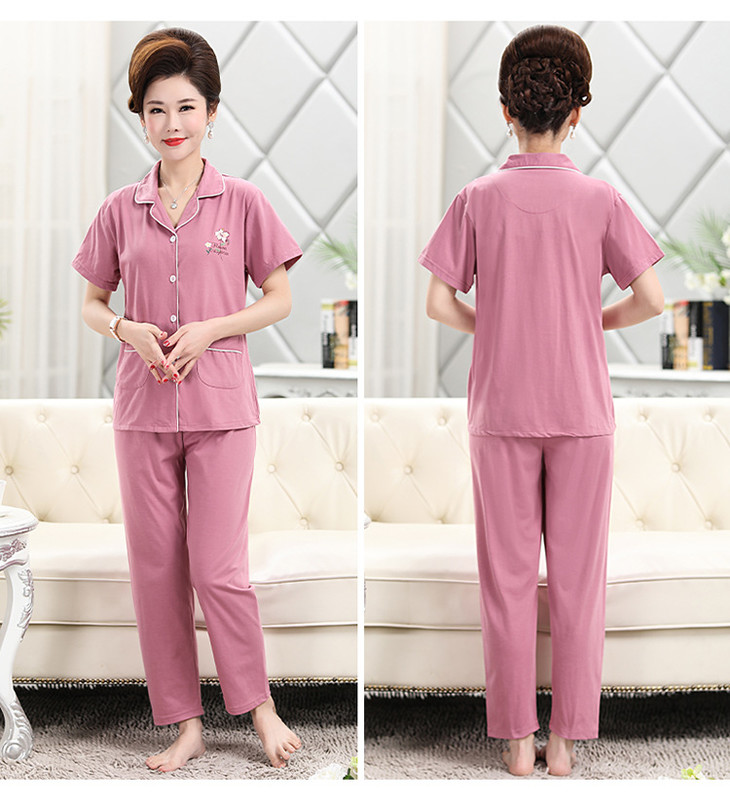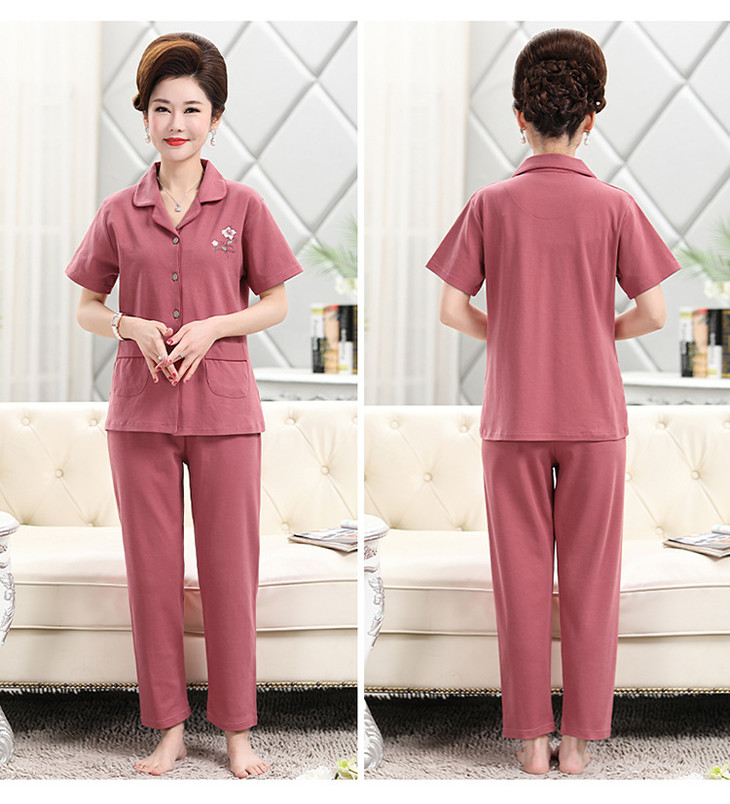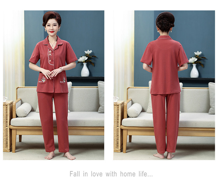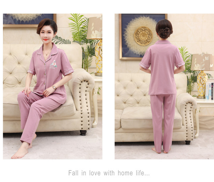 中老年女士妈妈纯棉睡衣,短袖长裤老人家居服套装LJX-544