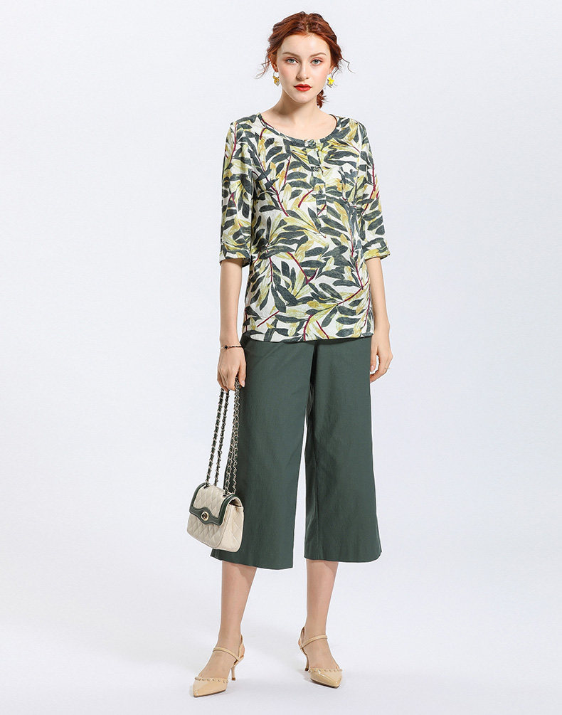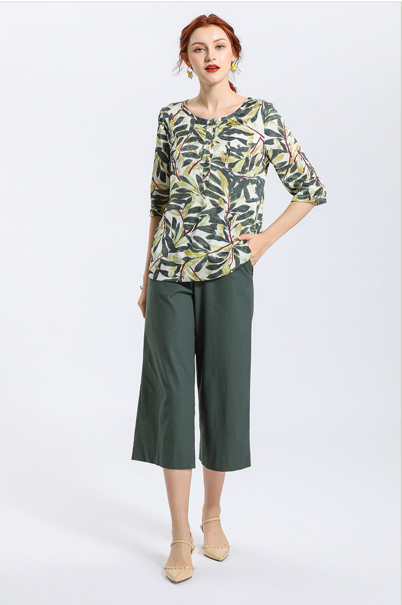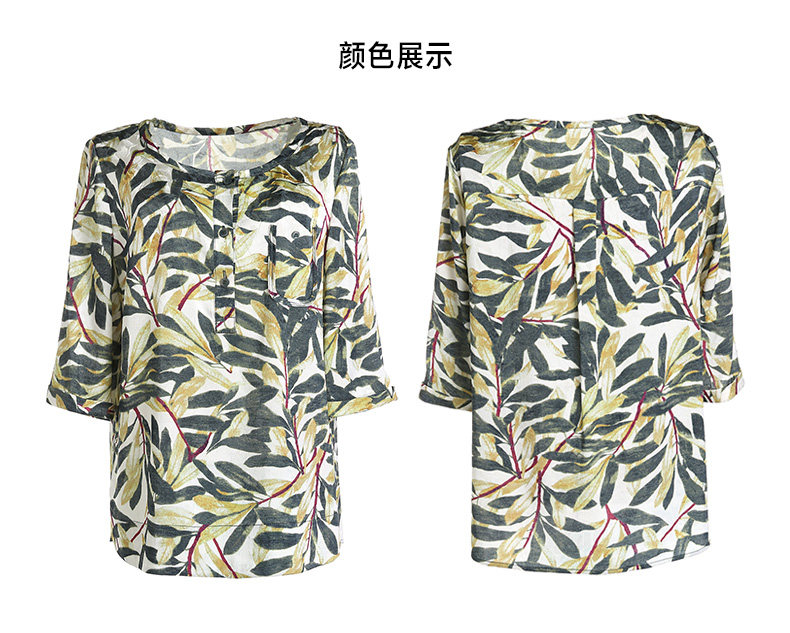 乔万尼夏装真丝宽松印花七分袖桑蚕丝衬衫沙滩度假女上衣EN2C535