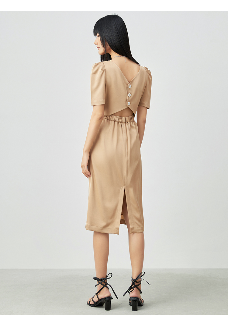 VIMAGE纬漫纪春季新品方领简约时尚泡泡袖连衣裙V1507171