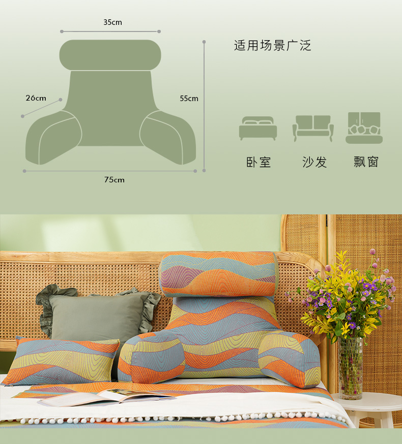 秋风麦浪系列护颈腰靠软包大靠背卧室榻榻米护腰沙发飘窗护颈枕可拆洗