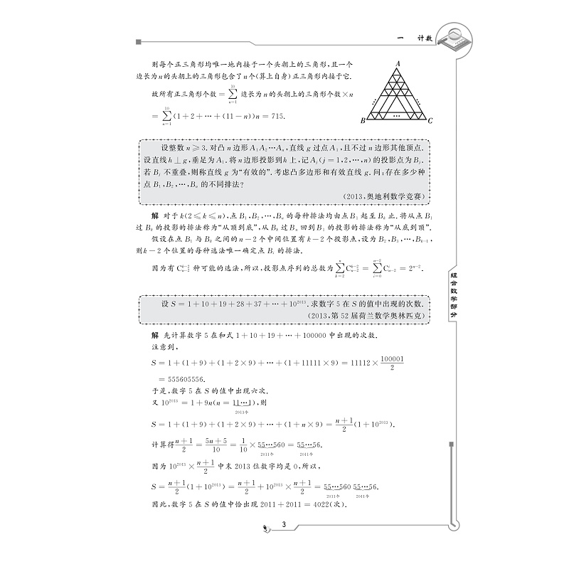 本书按照高中数学竞赛大纲要求,精选了世界各地数学奥林匹克竞赛的优秀试题。本分册是组合数学部分,对所有问题作了详细讲解,旨在提高学生的解决问题和分析问题的能力。