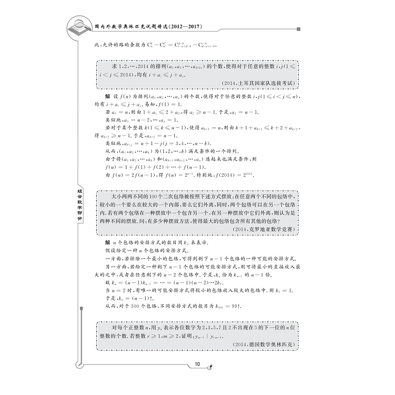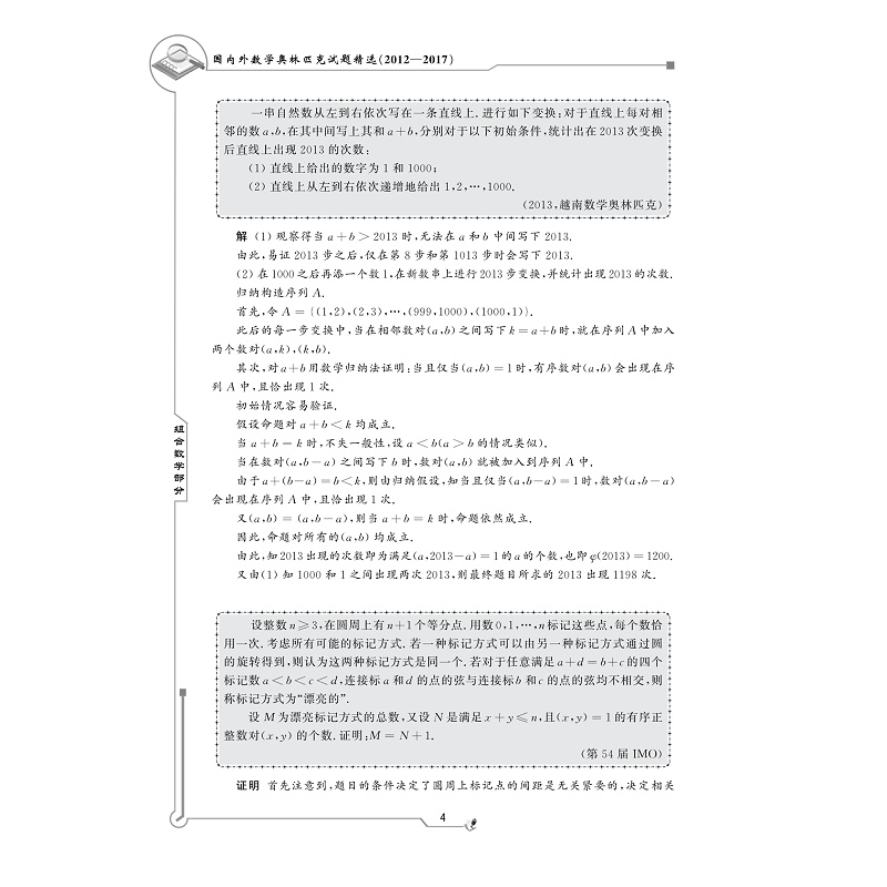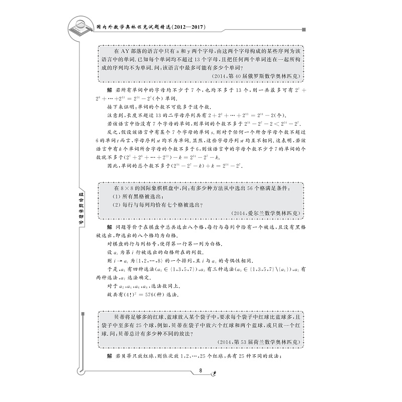 书名:国内外数学奥林匹克试题精选(2012-2017) 组合数学部分