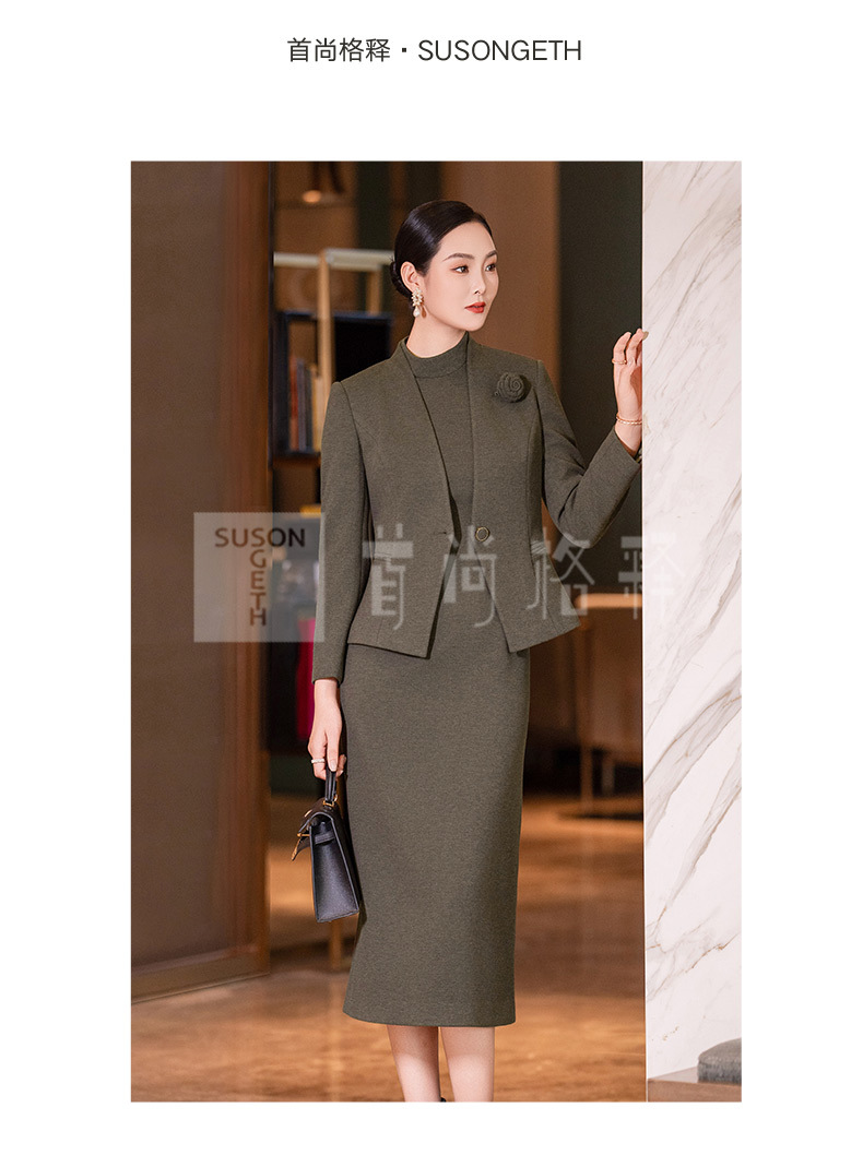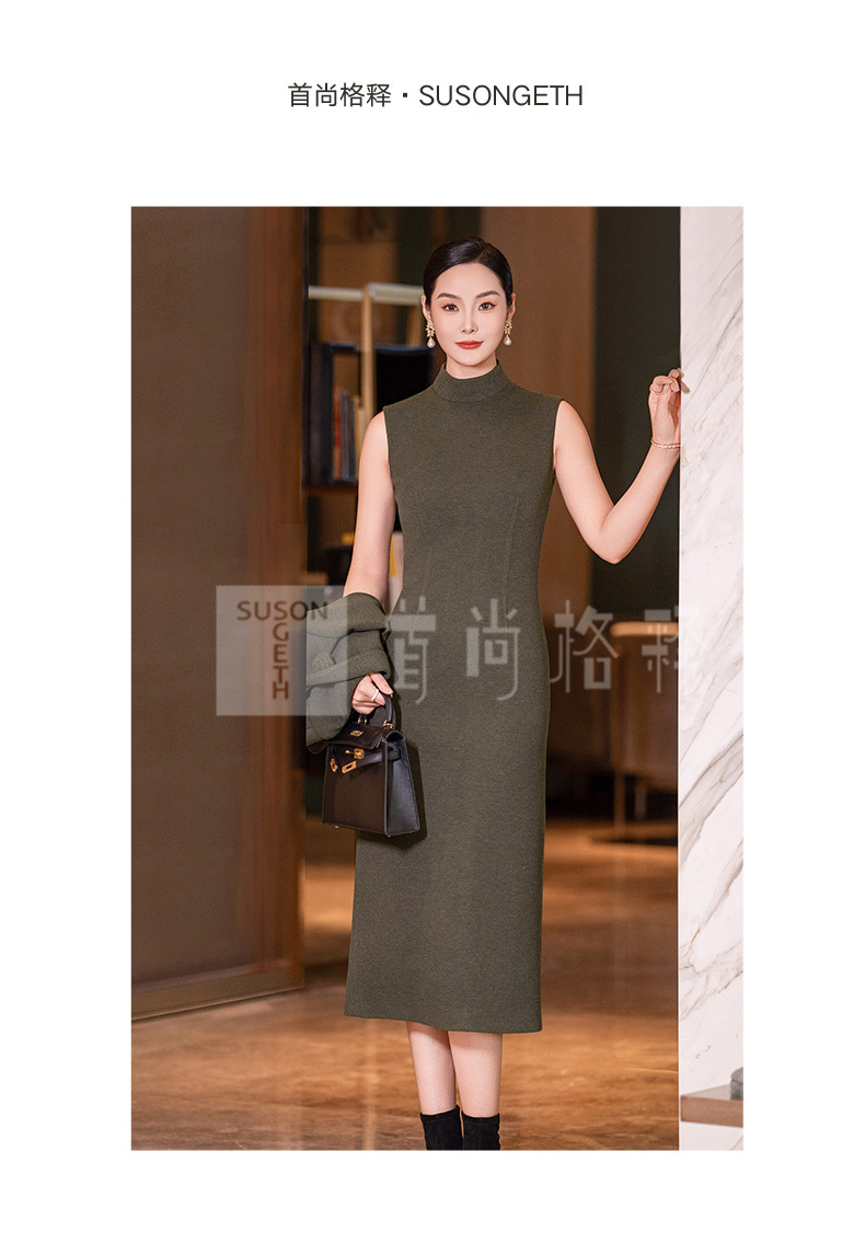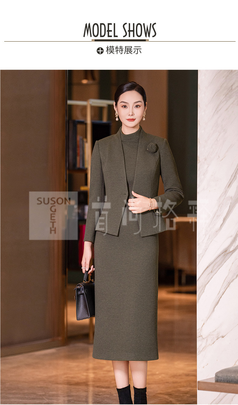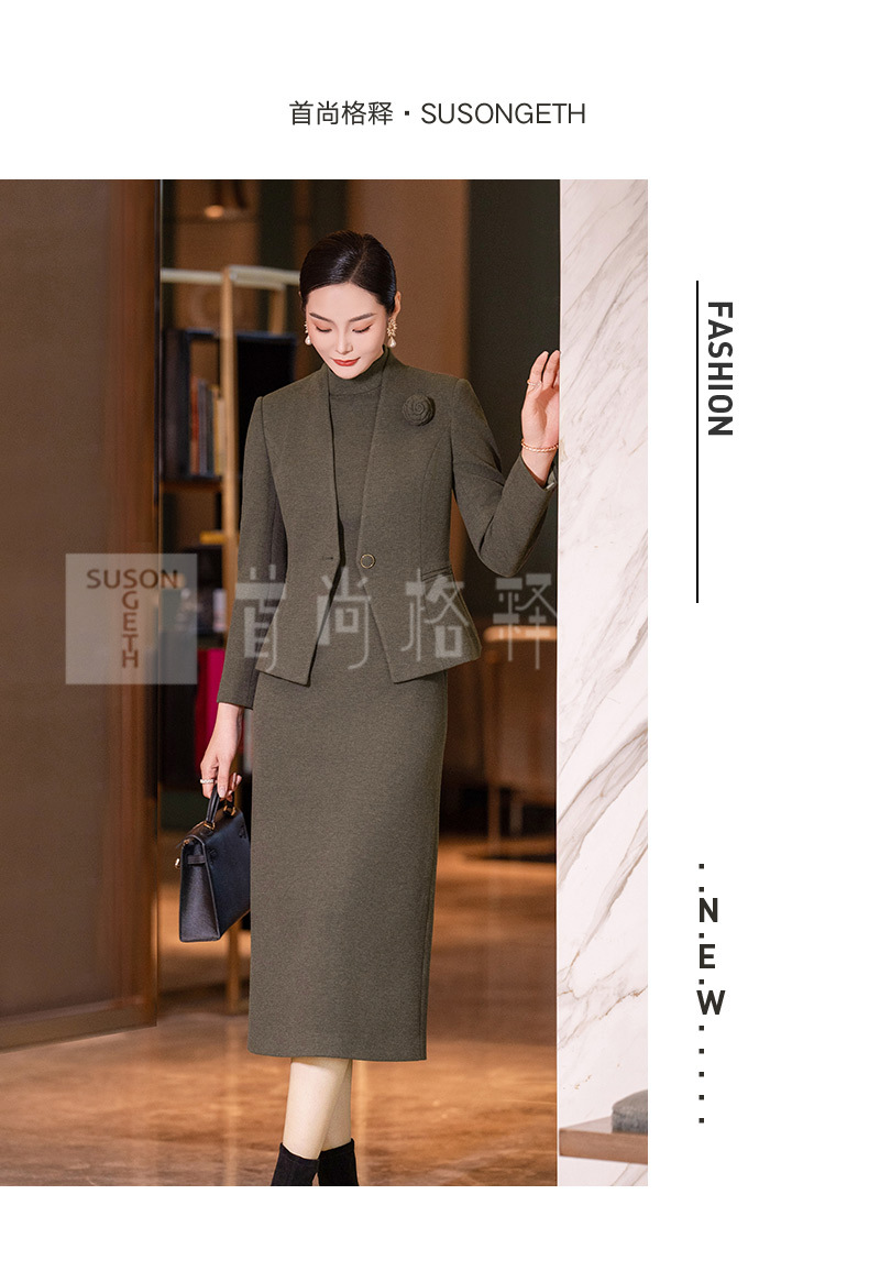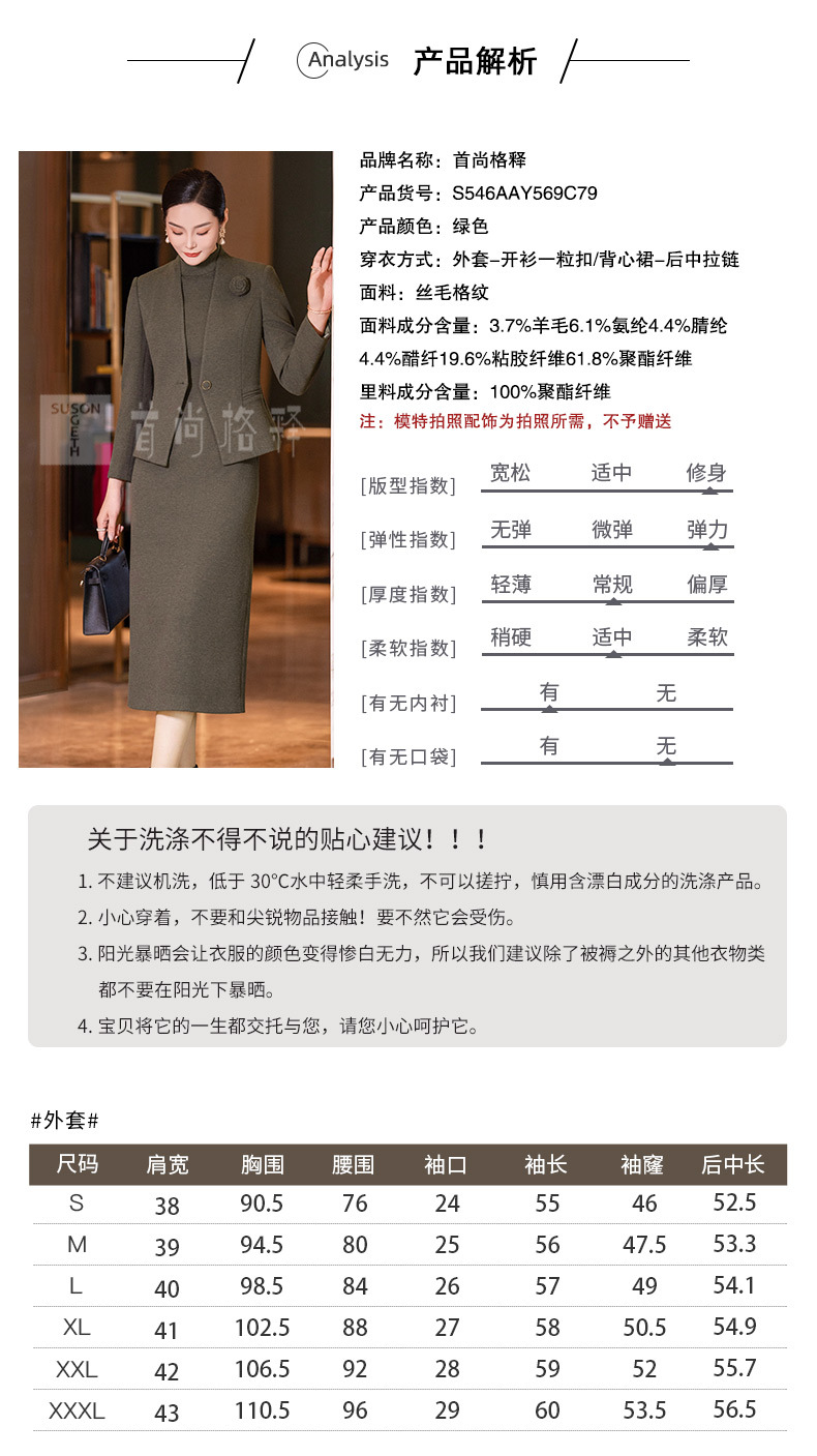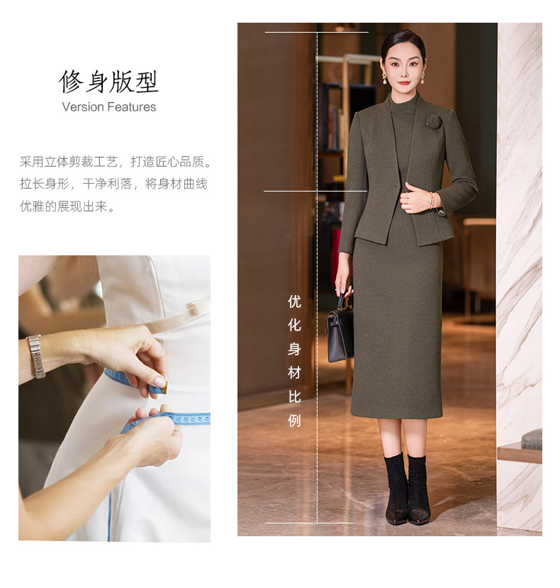 YBY 569C79时尚毛呢套装裙气质高级感羊毛修身连衣裙两件套