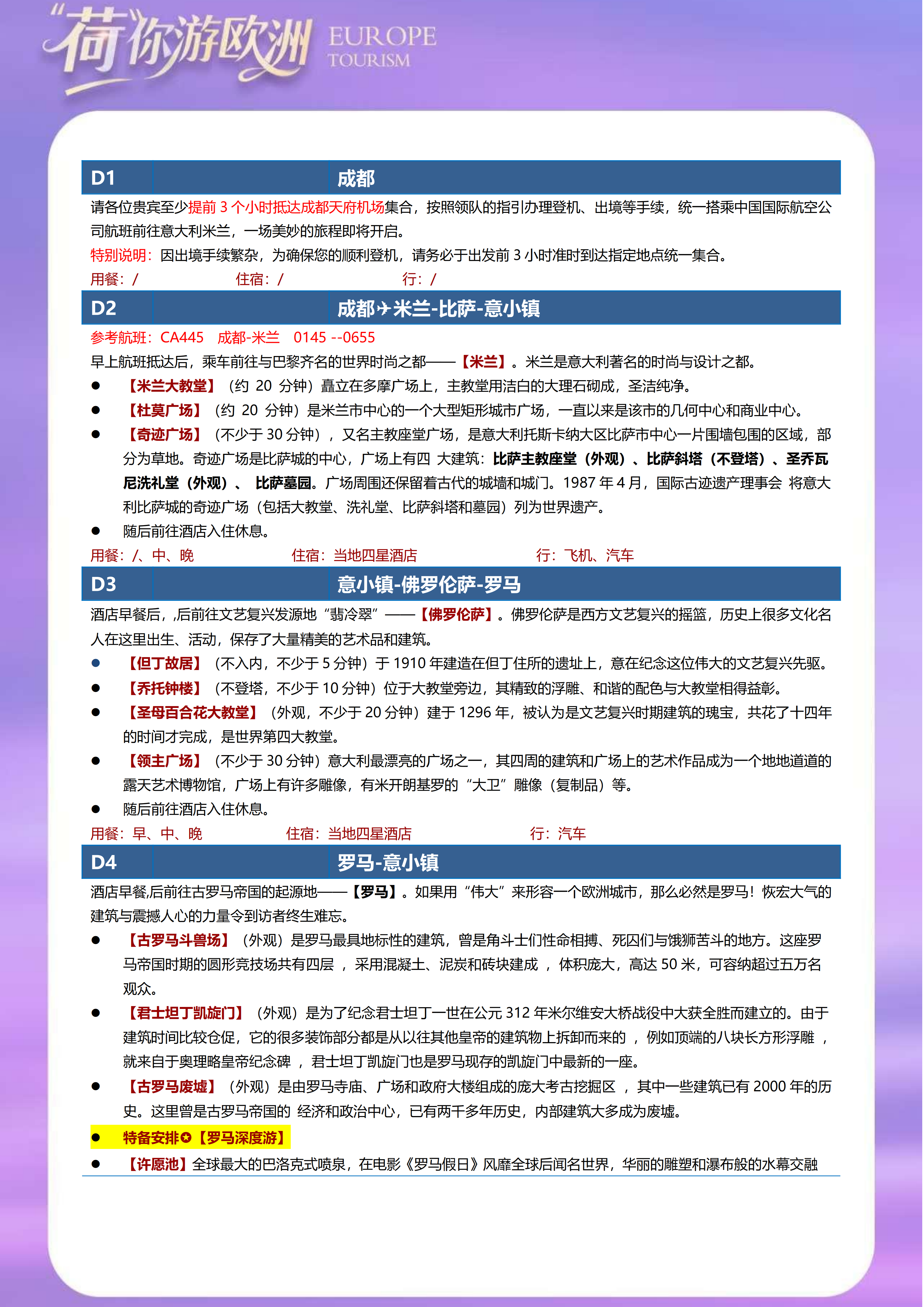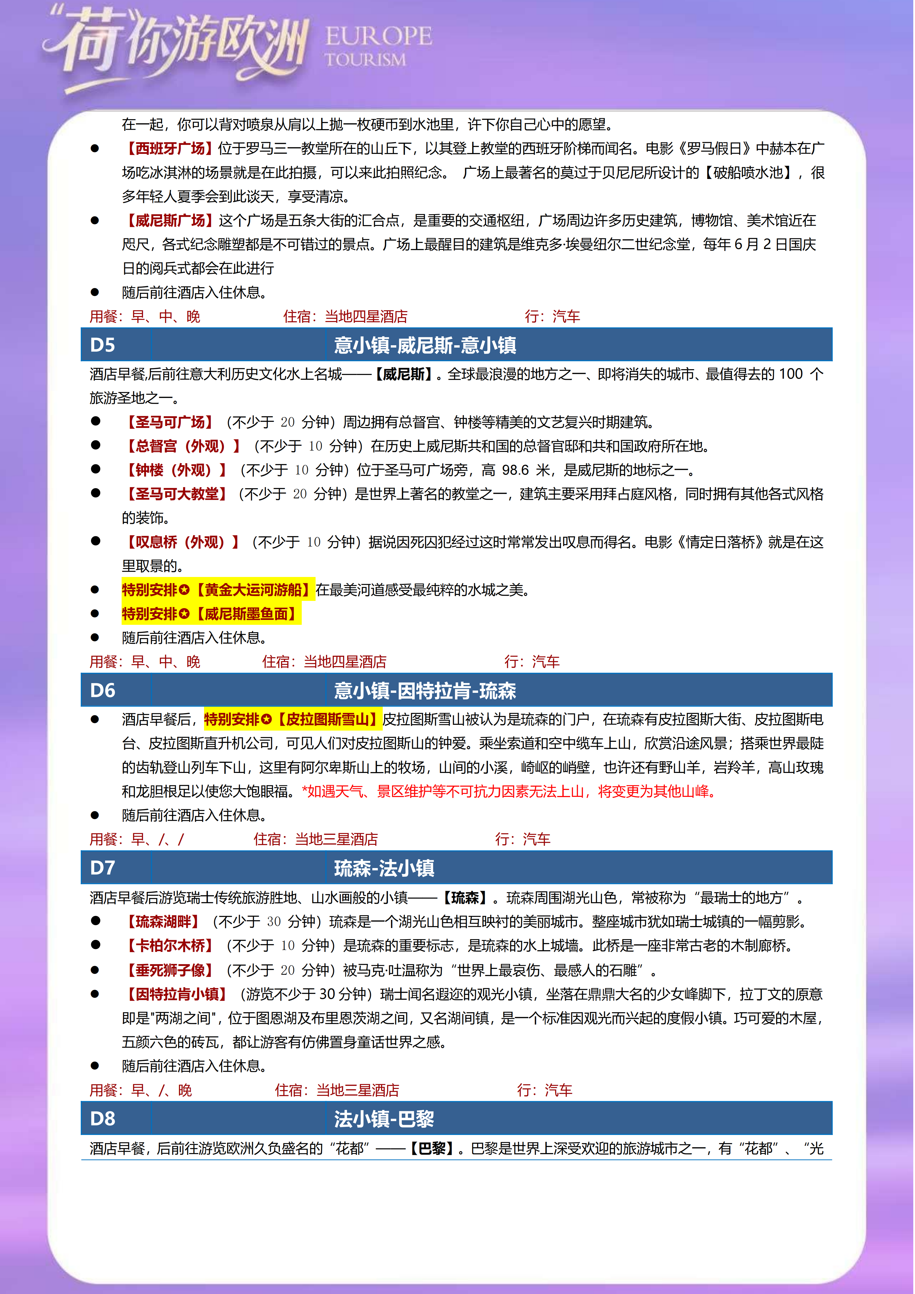 荷兰+德法意瑞 5国14天--4月7日--精华全览