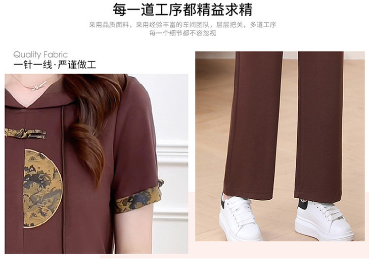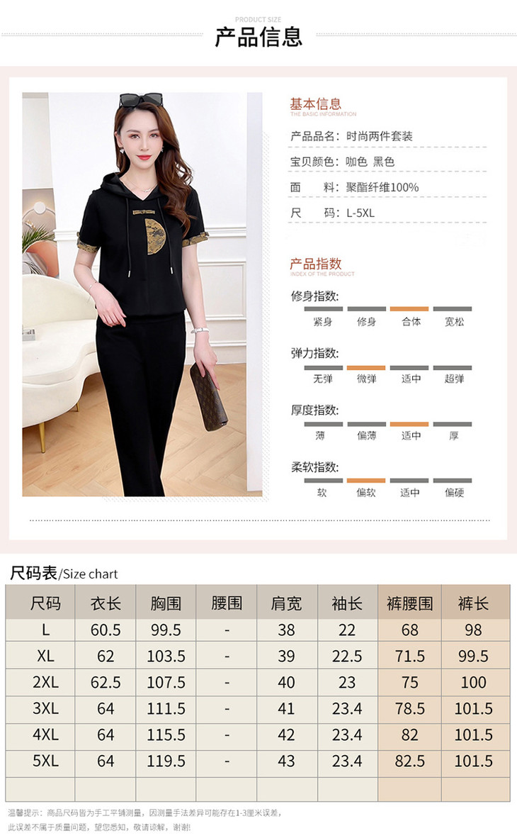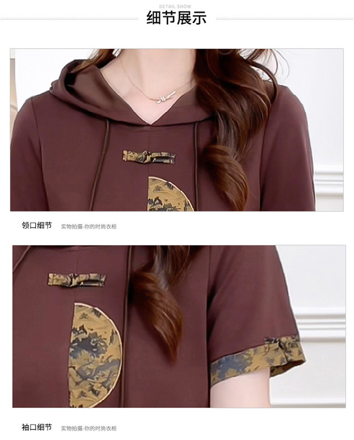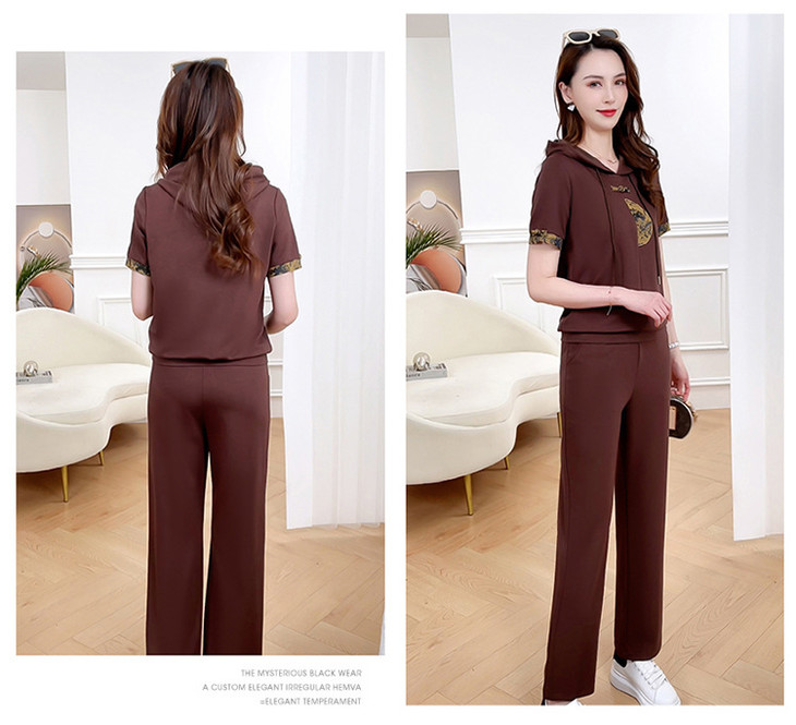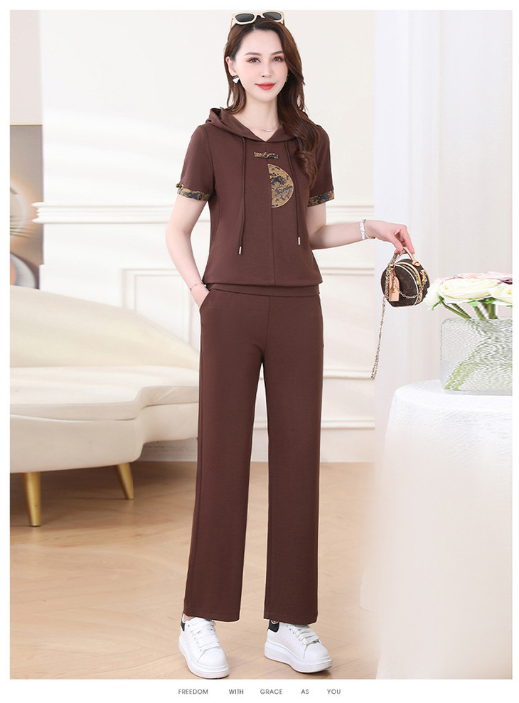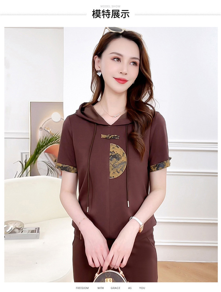 QYMXYKL-LSA15-L夏款短款休闲短袖连帽小衫简约修身显瘦直筒裤新中式运动两件套装