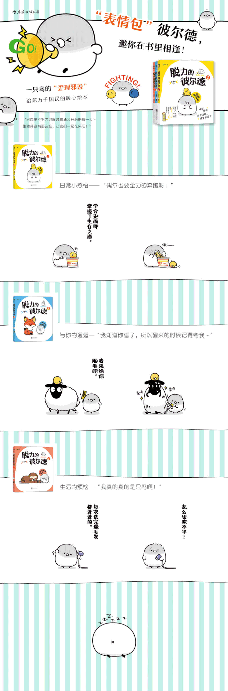 自2011年1月22日彼尔德第一次出现在新浪微博,便引发了流行风潮,关于她的表情包、条形漫画、四格漫画、玩具公仔等陆续推出,可爱的形象广受欢迎。本书是彼尔德第一次以绘本的形式出现,以此继续开拓更多关于她的小故事。