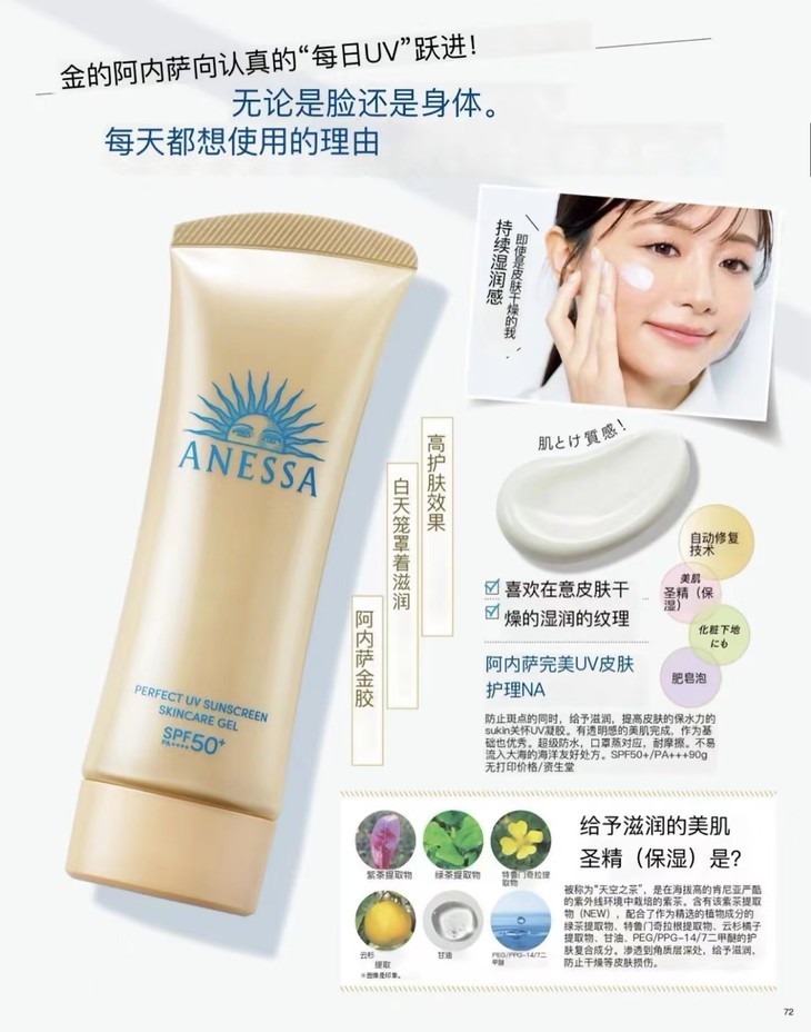 👑安耐晒面部防晒啫喱90g-金色 24年款 💥全线大升级,更持久,更服帖,更保湿✅ ✨【自动修复技术】可自动修复防晒堆积的“皱纹、卡纹”,耐摩擦,上脸更服帖✔️ ❤️全方位彻底守护眼周等易产生斑点的部位! 🍃【新添加植物美肌精华】防止干燥等肌肤损伤,保护皮肤水分和屏障✔️ 💫经典小金管SPF50+PA++++ 【遇光遇热遇汗水后防晒膜更强噢】 💎保湿防晒二合一,重复涂抹也清爽,自在不闷痘,更适合上妆打底 👍清新柑橘香调,日常防晒、海边度假必入,手和全身都可用 💦啫喱质地比乳液更浓一些,滋润效果明显,减少脸部负担