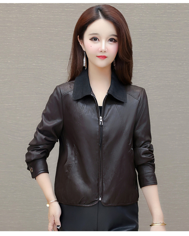 QYMLRX-SD58827-Y 时尚皮衣外套女秋季新款洋气显瘦百搭皮夹克拼接短款上衣 商品图0