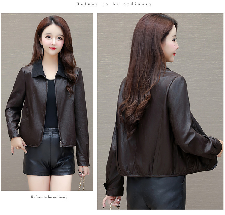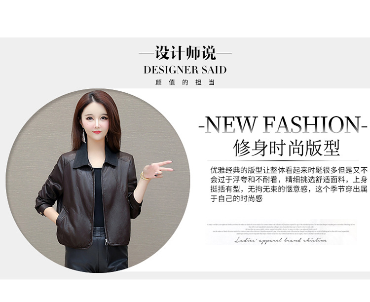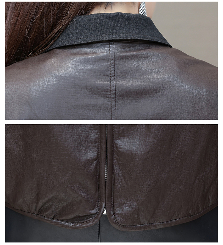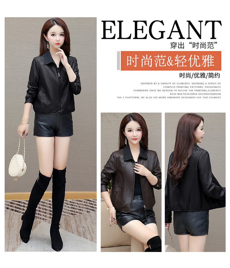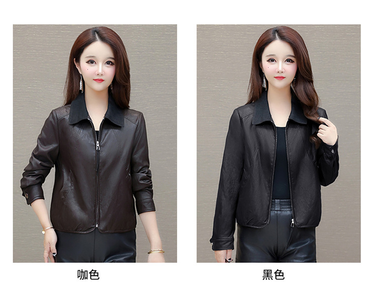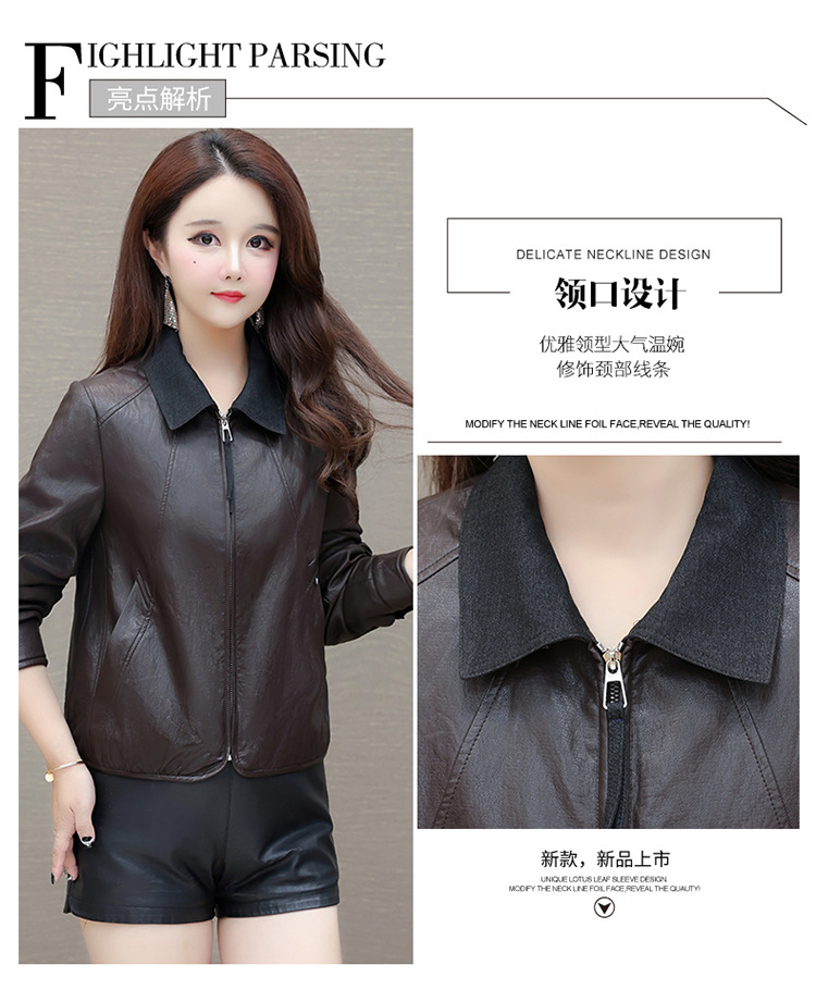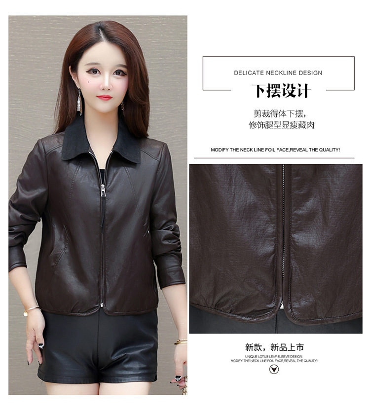 QYMLRX-SD58827-Y 时尚皮衣外套女秋季新款洋气显瘦百搭皮夹克拼接短款上衣 商品图4