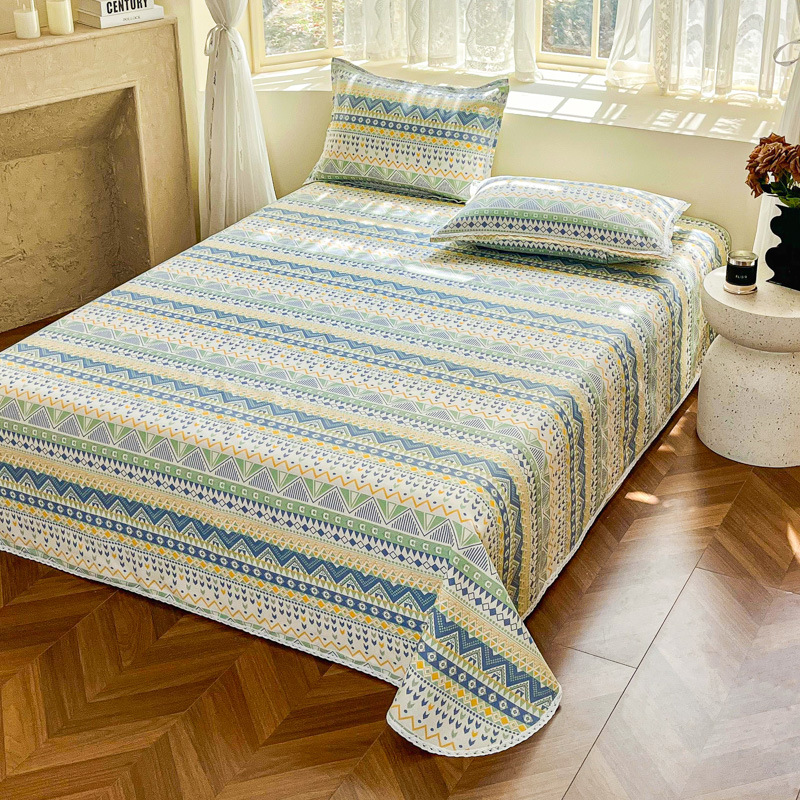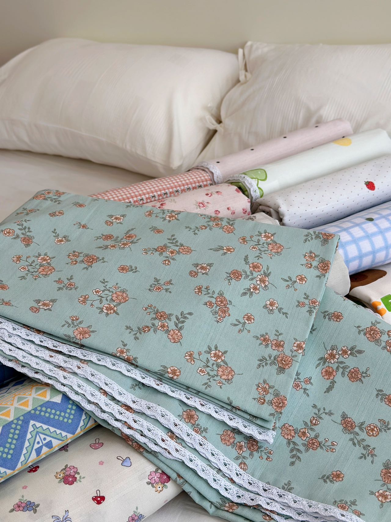 【凉而不冰】莱丝娜纱棉老粗布三件套,加厚加密凉席,清爽不沾身不移位。A类全棉,吸湿排汗,健康裸睡。精致花边,多色可选~