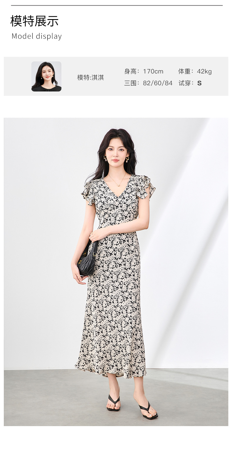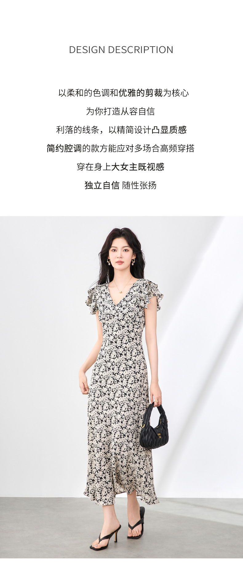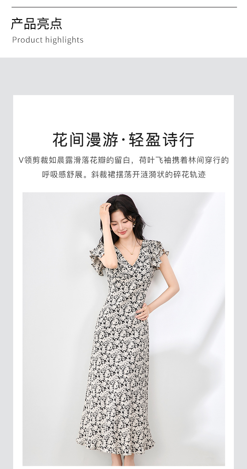 「高货wl」全新升级【铂金会员358/天猫479/差价121】(84636)洛诗琳法式清新浪漫小白花连衣裙2025夏季V领荷叶边裙子