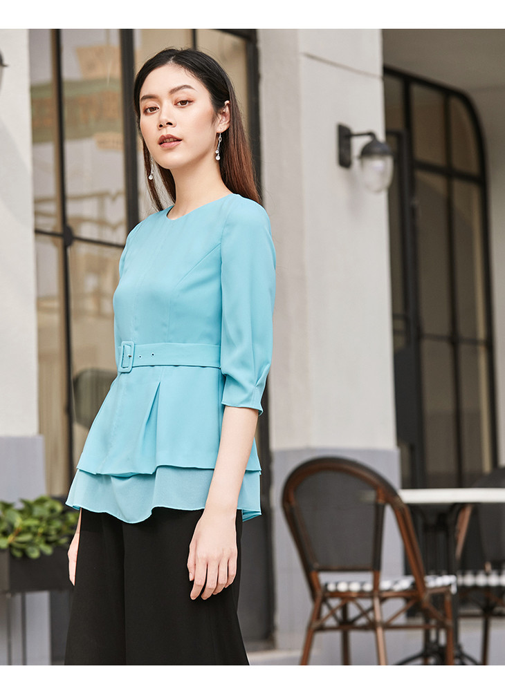 EITIE爱特爱秋季新款时尚气质金属印花衬衫女上衣A2009409