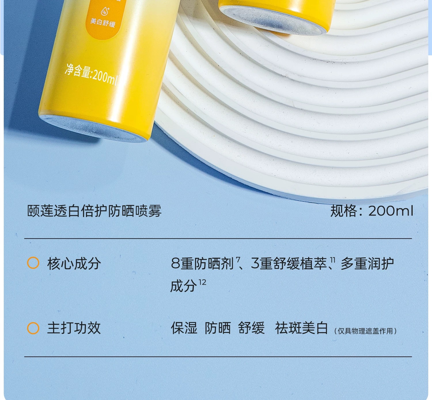 【斌哥优选】福瑞达颐莲防晒喷雾200ml大瓶。防晒,美白白,k老三管齐下。还加玻尿酸,养肤。