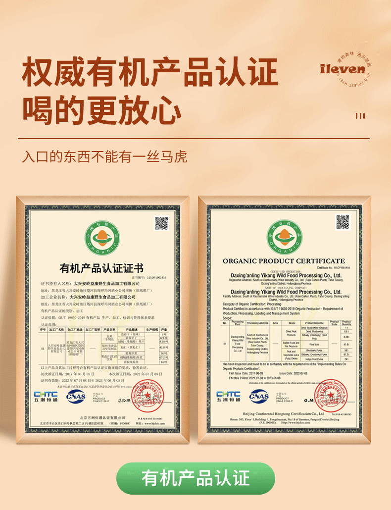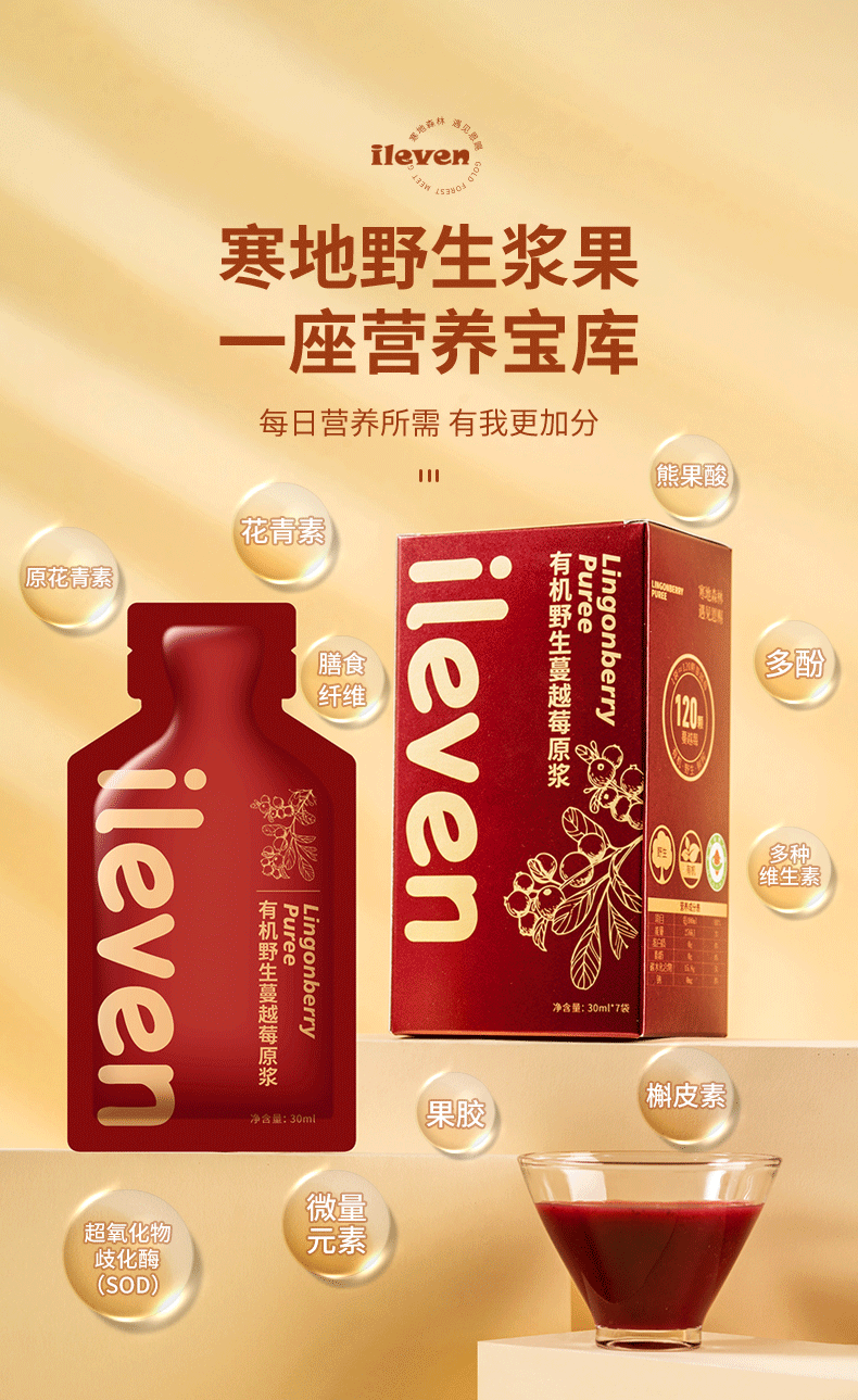 ileven有机野生蔓越莓原浆nfc鲜蔓越莓汁大兴安岭饮料果蔬汁饮品