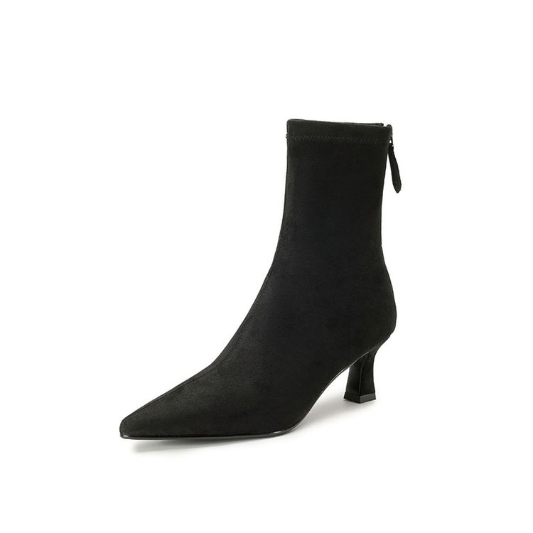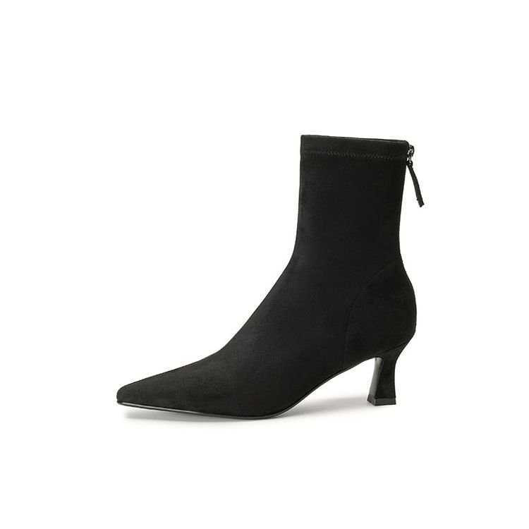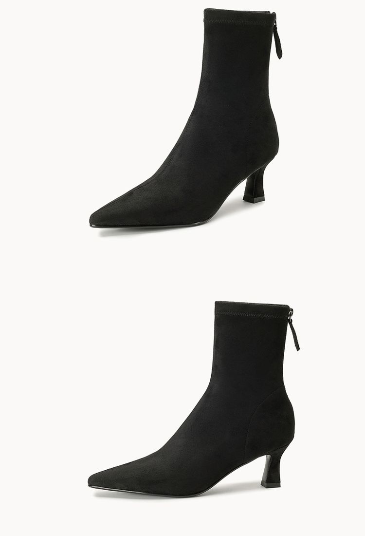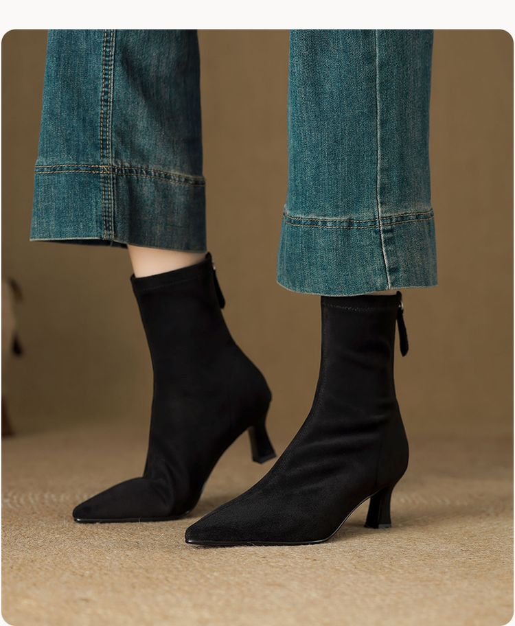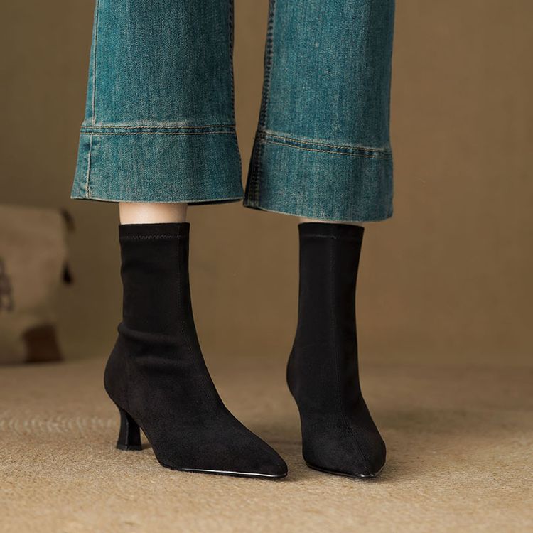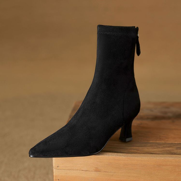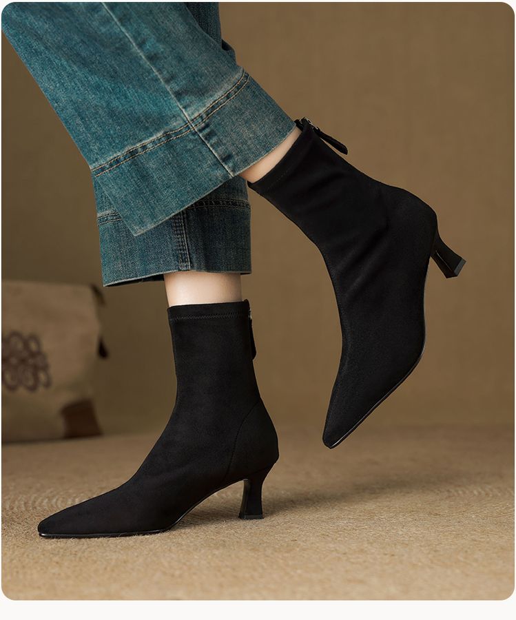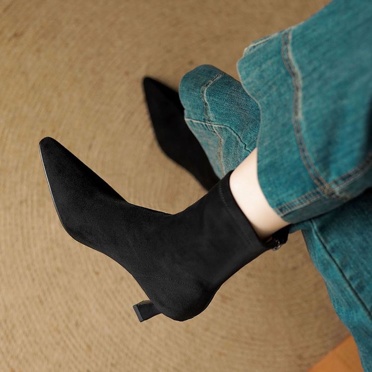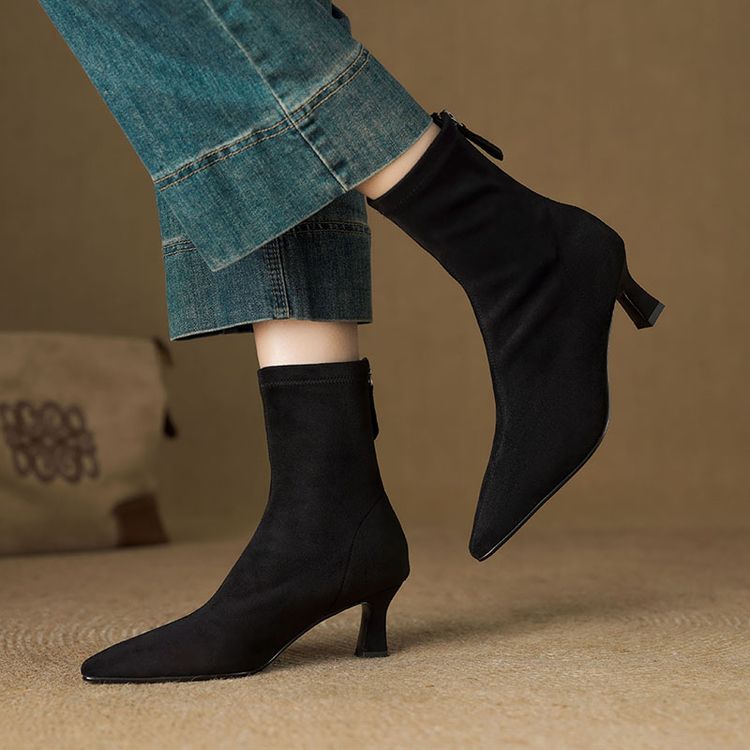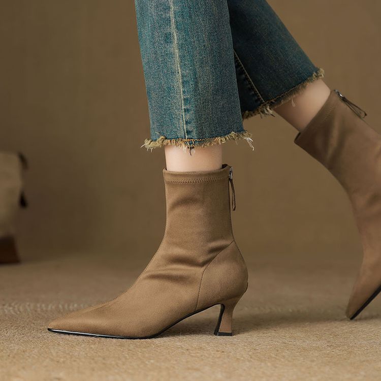 【预售5天】尖头高跟短靴女秋冬新款棕色麂皮绒面洋气裸靴弹力瘦瘦靴HB&8866