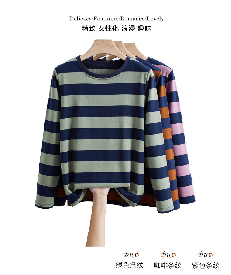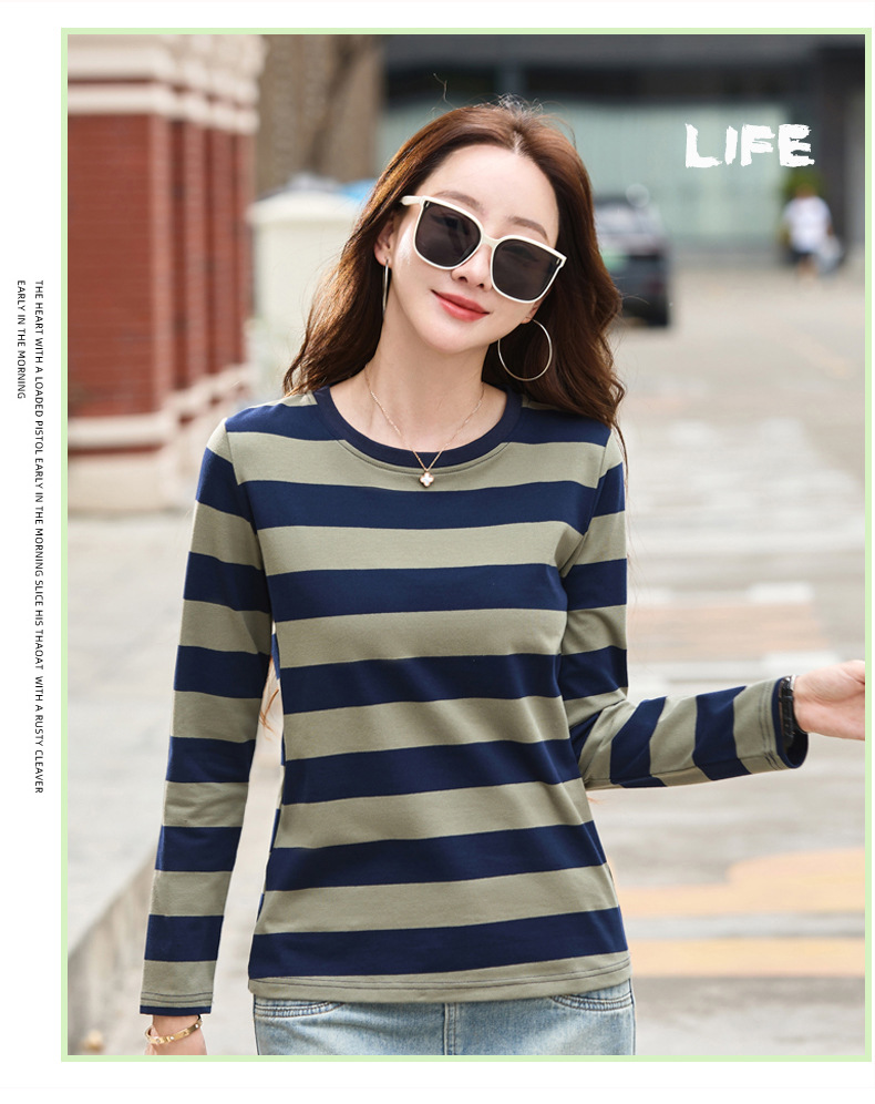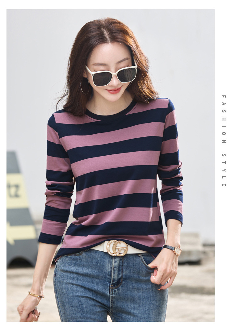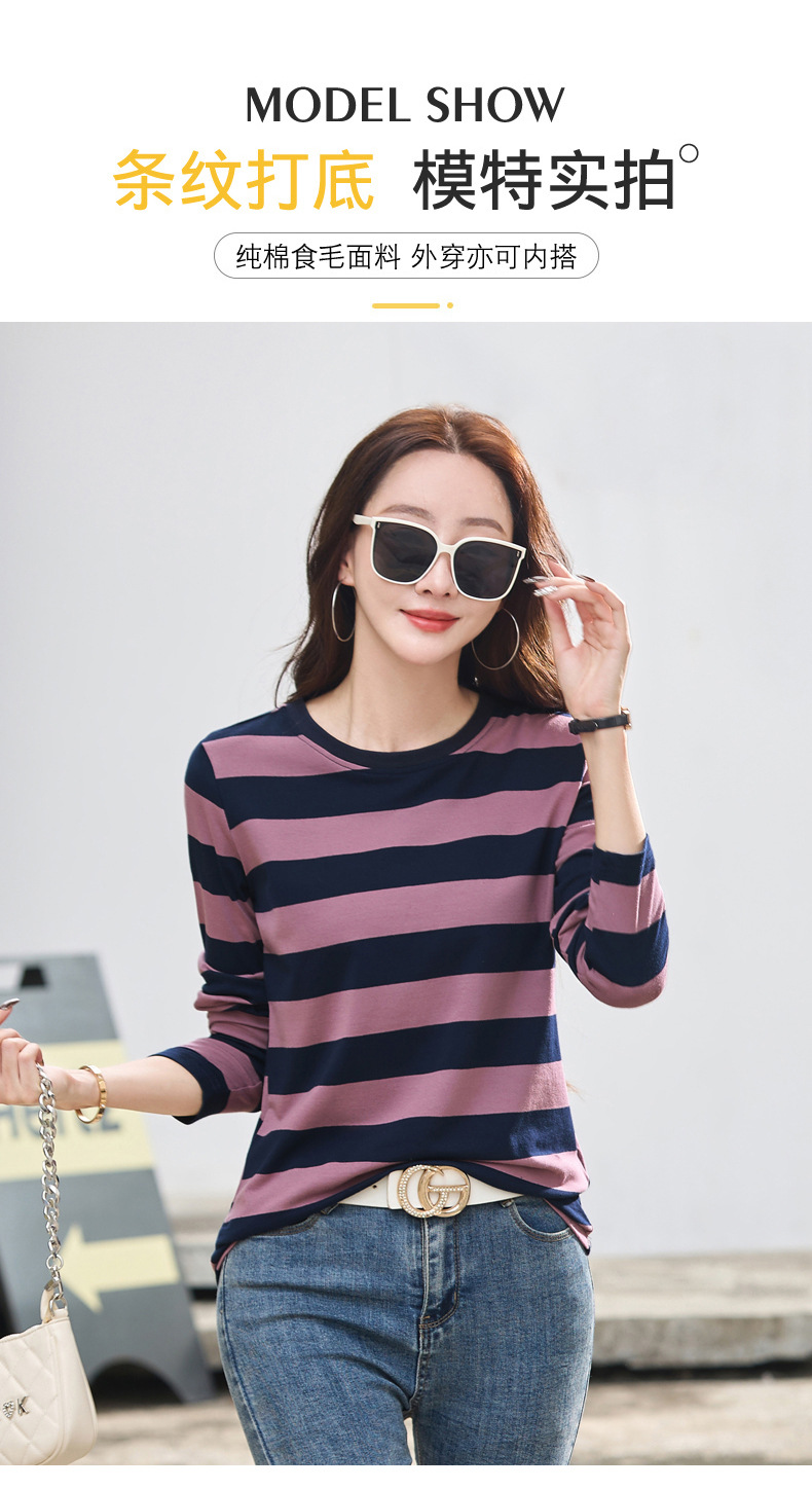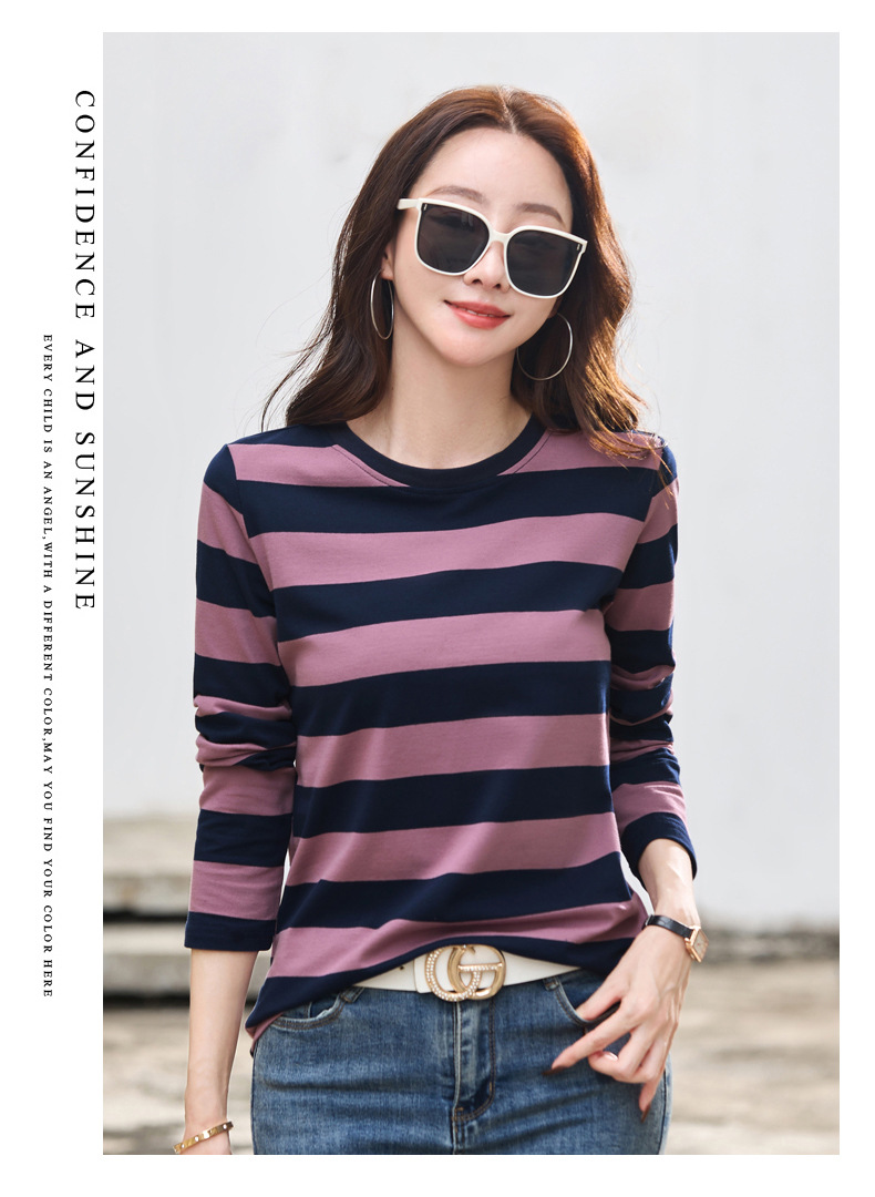 百媚生 条纹长袖T恤棉质圆领上衣9898
