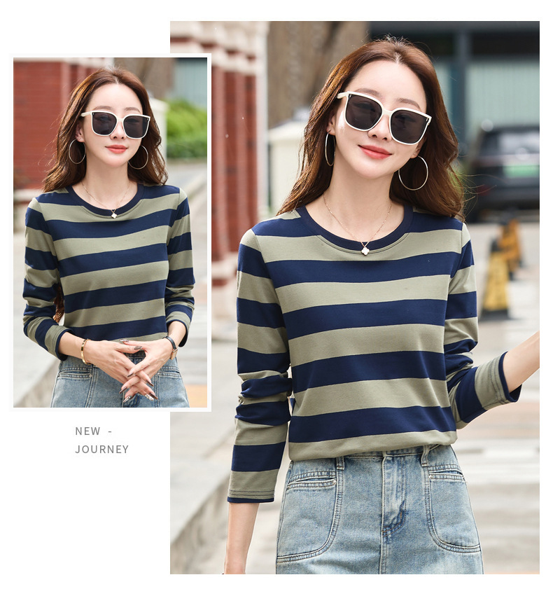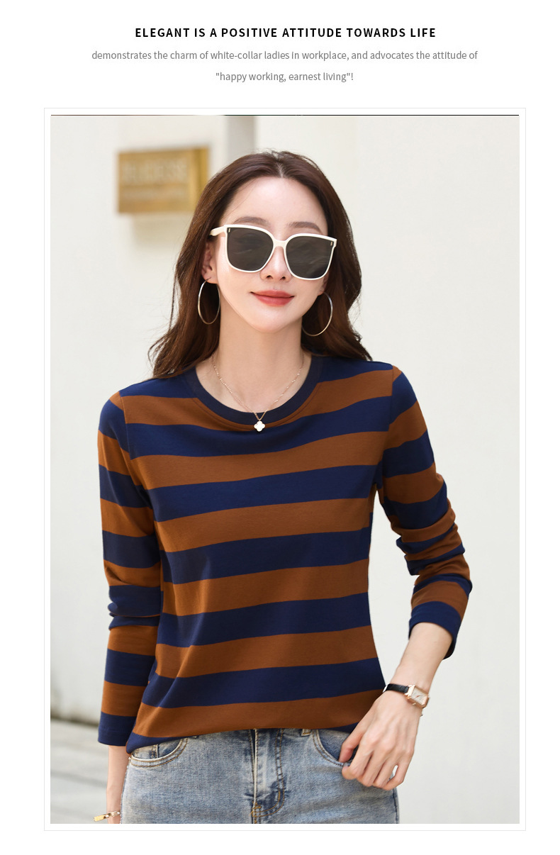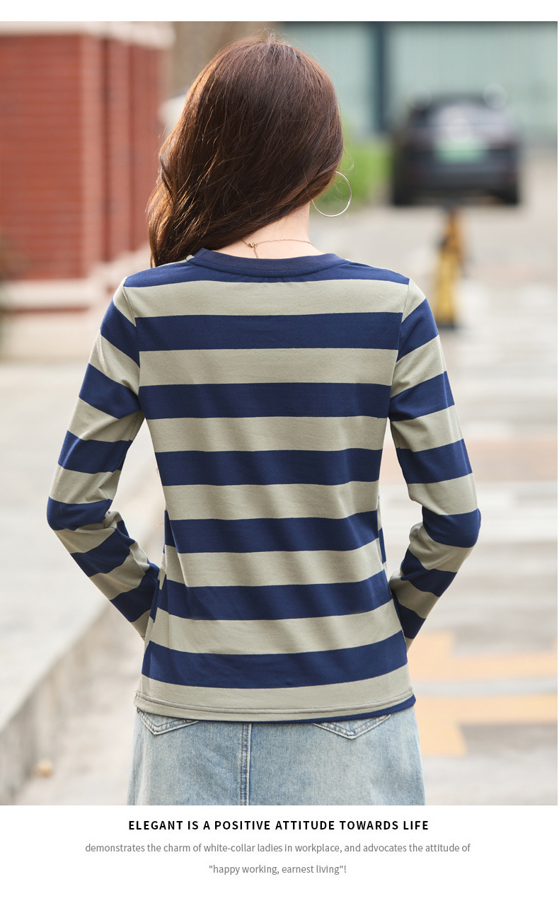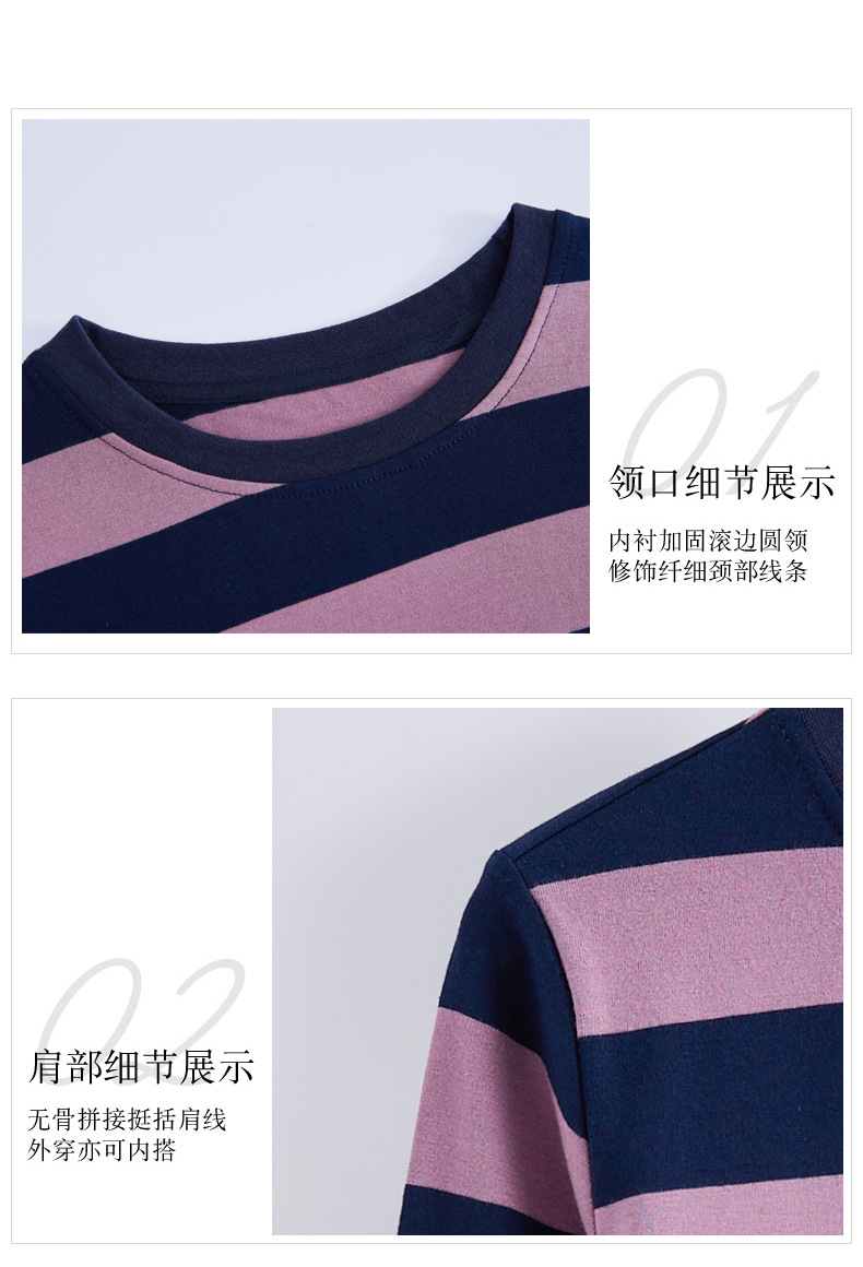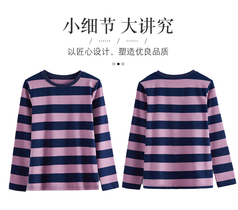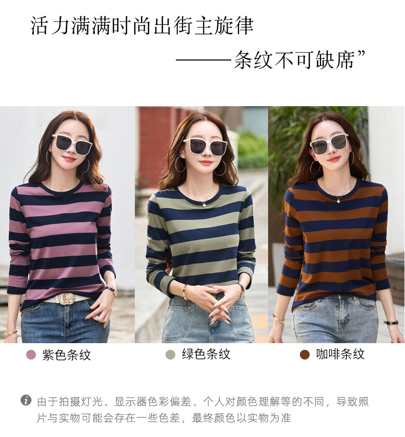 百媚生 条纹长袖T恤棉质圆领上衣9898