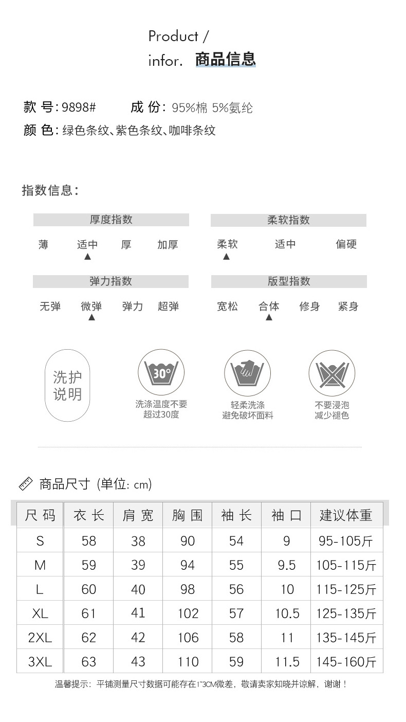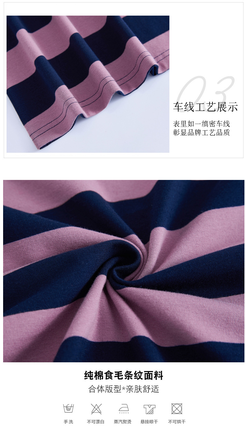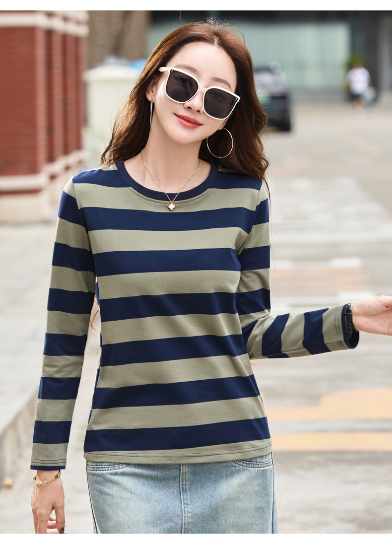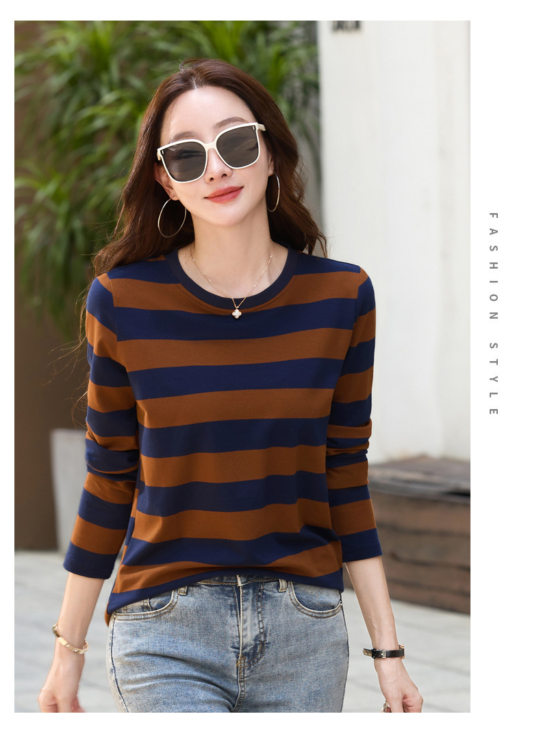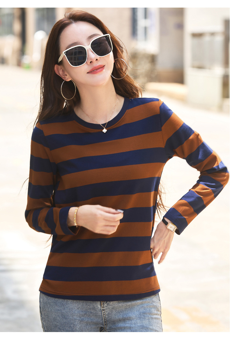 百媚生 条纹长袖T恤棉质圆领上衣9898