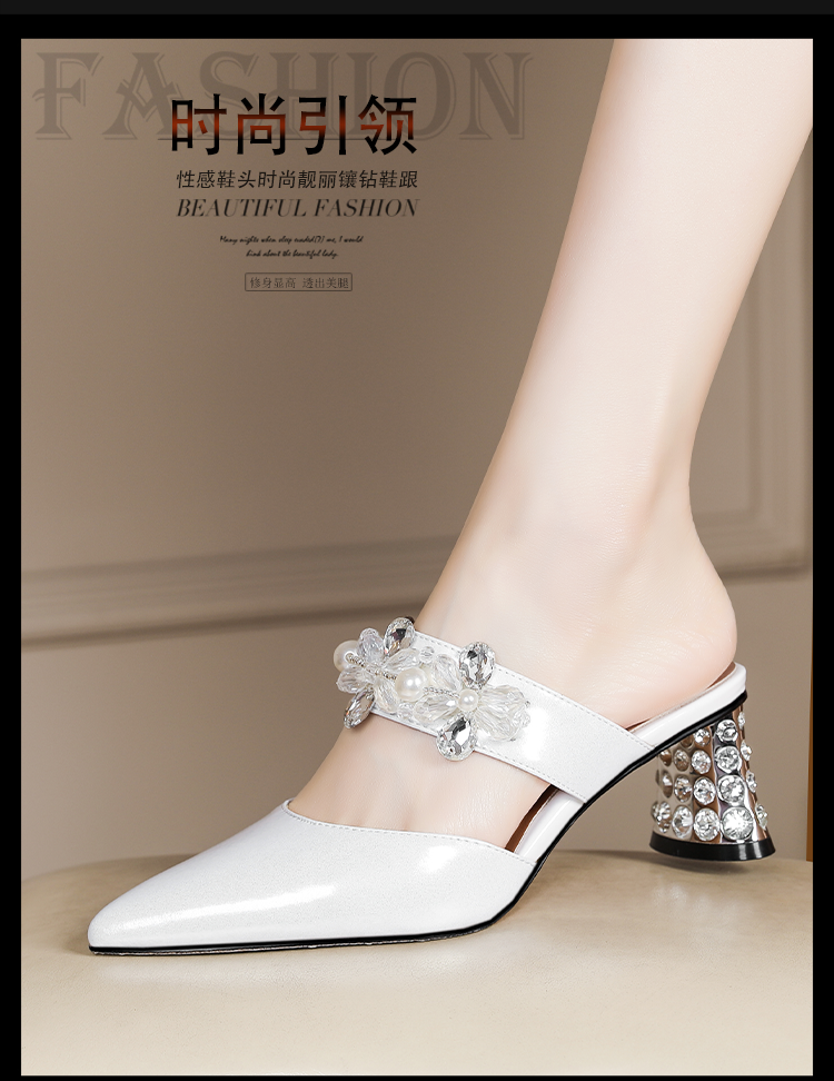 女夏外穿时尚,高跟真皮凉拖鞋新款包头半拖鞋PLGZ-B1936