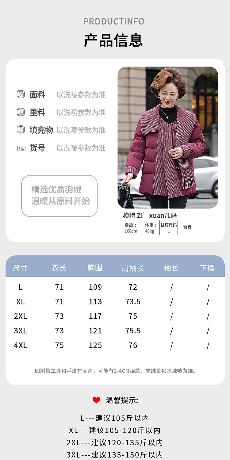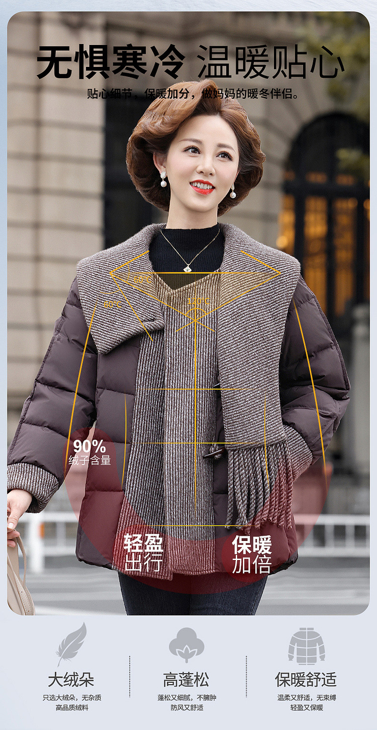 雀说妈妈冬装羽绒棉服贵夫人保暖外套秋冬季洋气棉袄女ALW9684