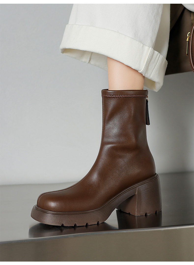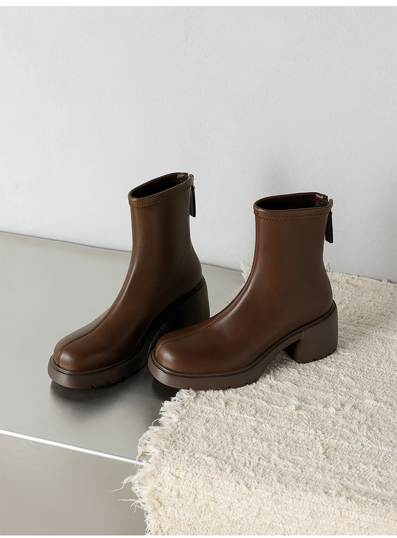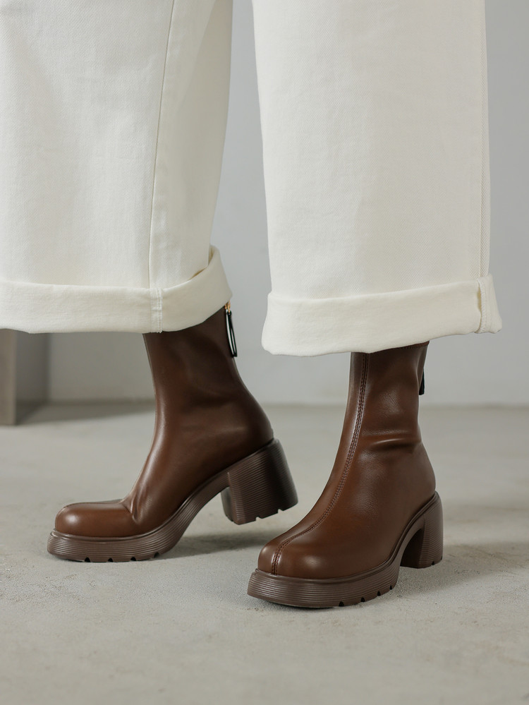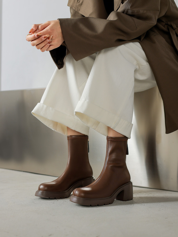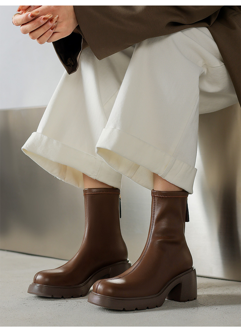 【预售5天】超轻软底爆款棕色马丁靴秋冬新款厚底增高瘦瘦弹力切尔西短靴WC&M3532