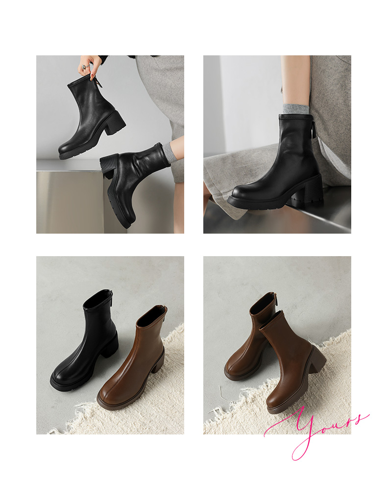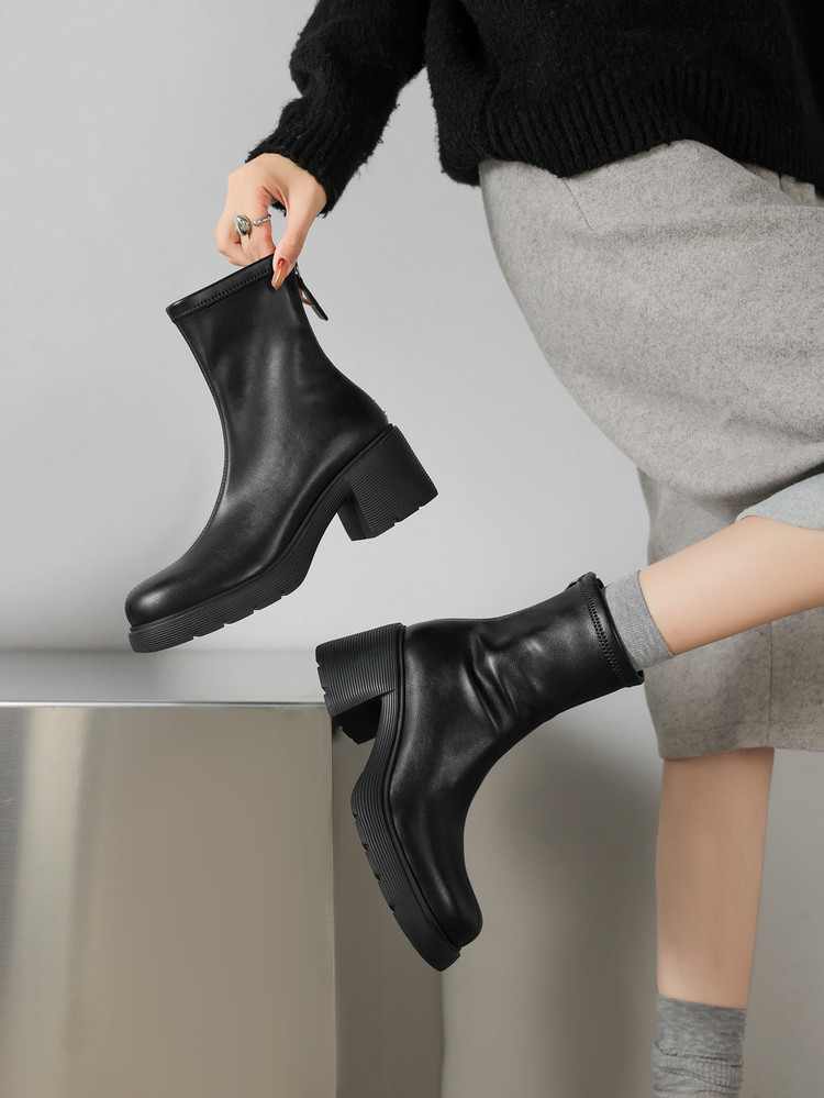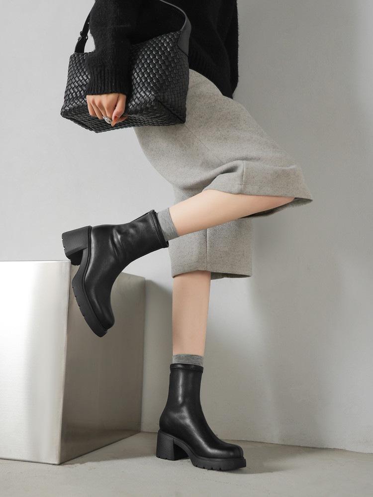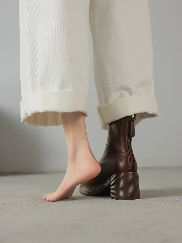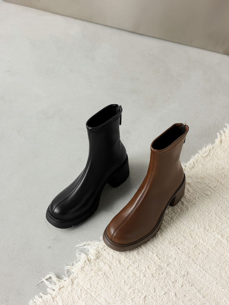 【预售5天】超轻软底爆款棕色马丁靴秋冬新款厚底增高瘦瘦弹力切尔西短靴WC&M3532